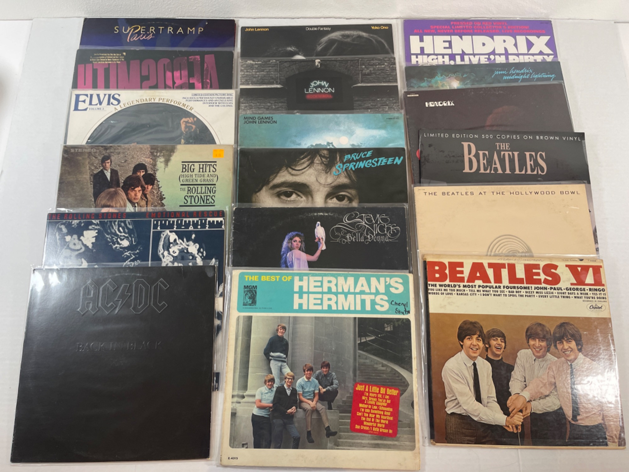 Vintage Rock Vinyl Records - The Beatles, Jimi Hendrix, AC/DC & More! Records have not been taken out and inspected so their workability is not guaranteed. All have been opened, but most have been kept in sleeves and therefore in decent condition. TWO are promotional records.
