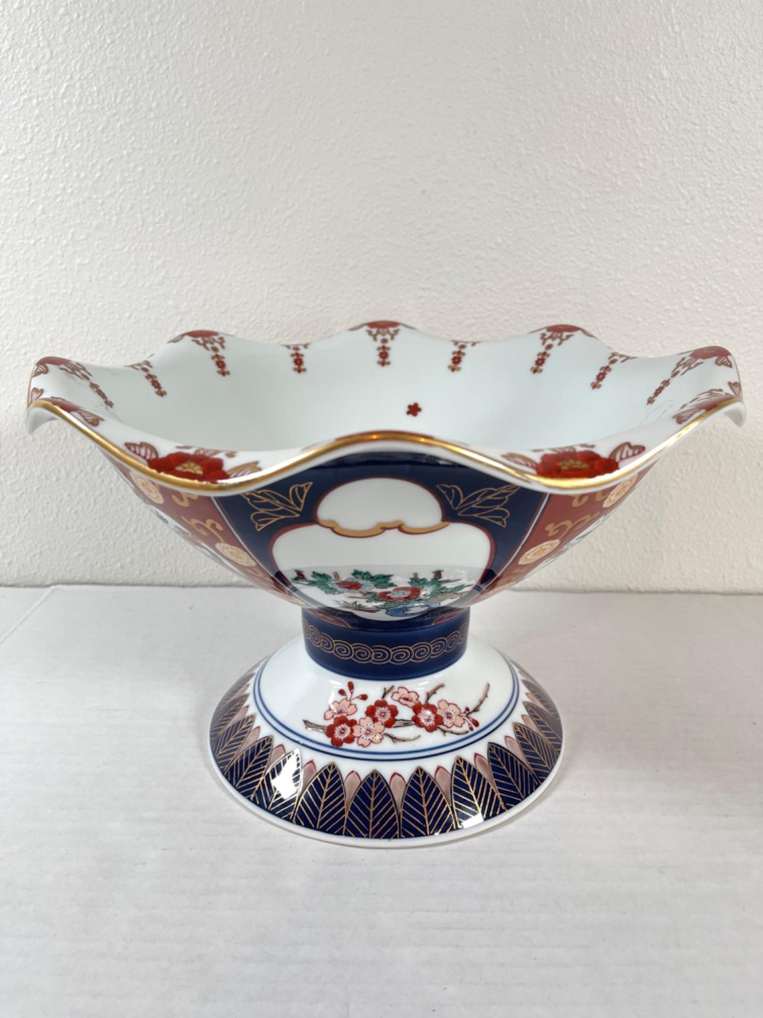 Large Japanese Gold Imari Hand Painted Pedestal Bowl Minor staining and scratches. Shown in photos.