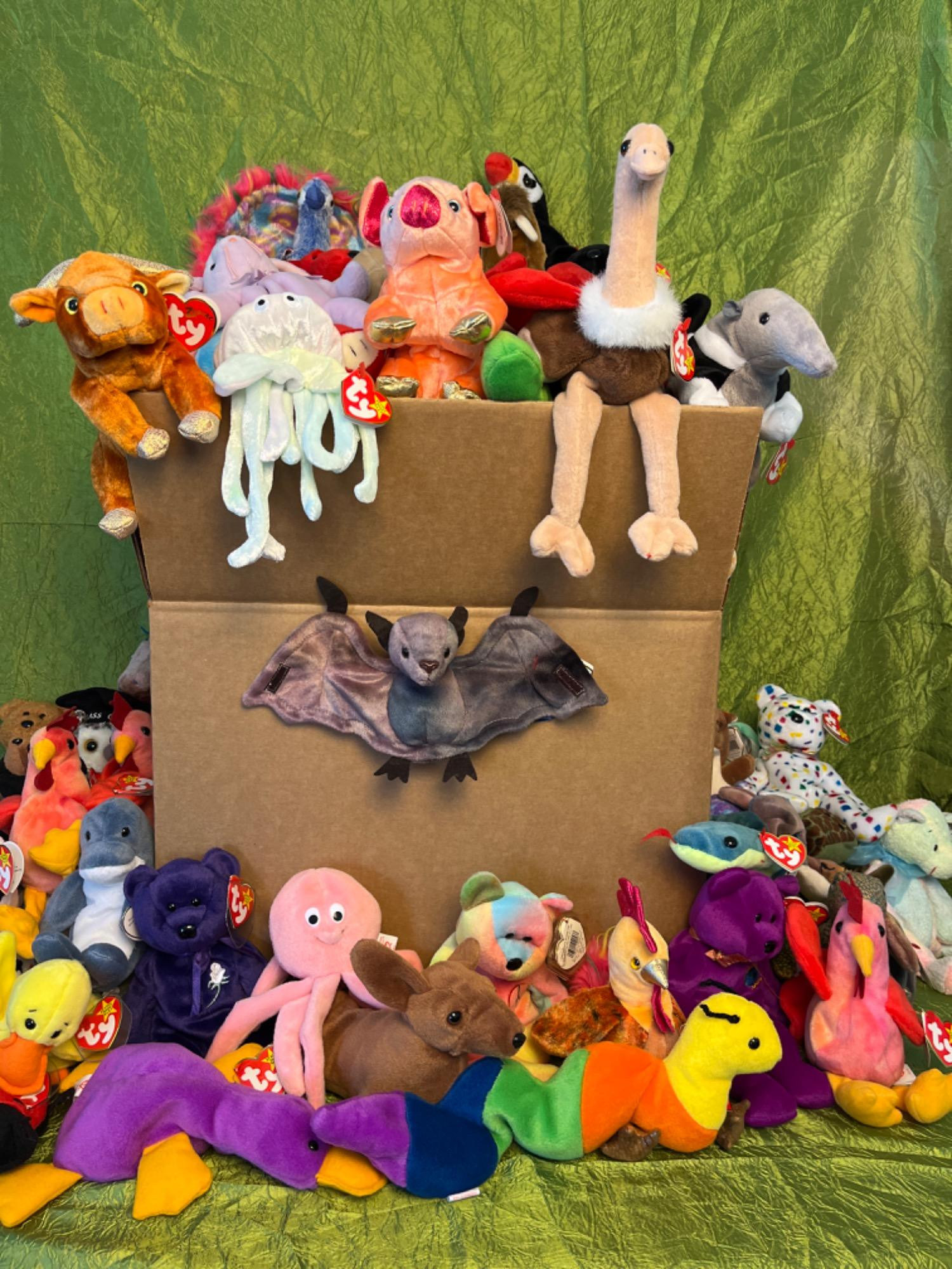 Many RARE - Misprint Collectible Beanie Baby Lg. Lot #1 A gigantic collection of Beanie Babies that includes many hard-to-find Beanies and misprint tags You’ll find some minis in here also! This collector focused her attention on the RARE Pics are just a sample of what is in this lot Non-smoker, non-pet house Box shown in photo measures 16”L x 12”W x 18 1/2”H