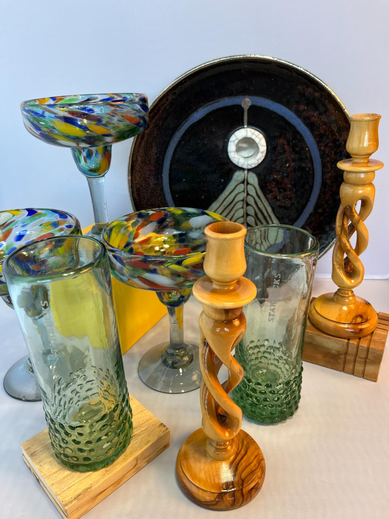 (3) Hand blown art glass Mexican margaritas (14 oz.)