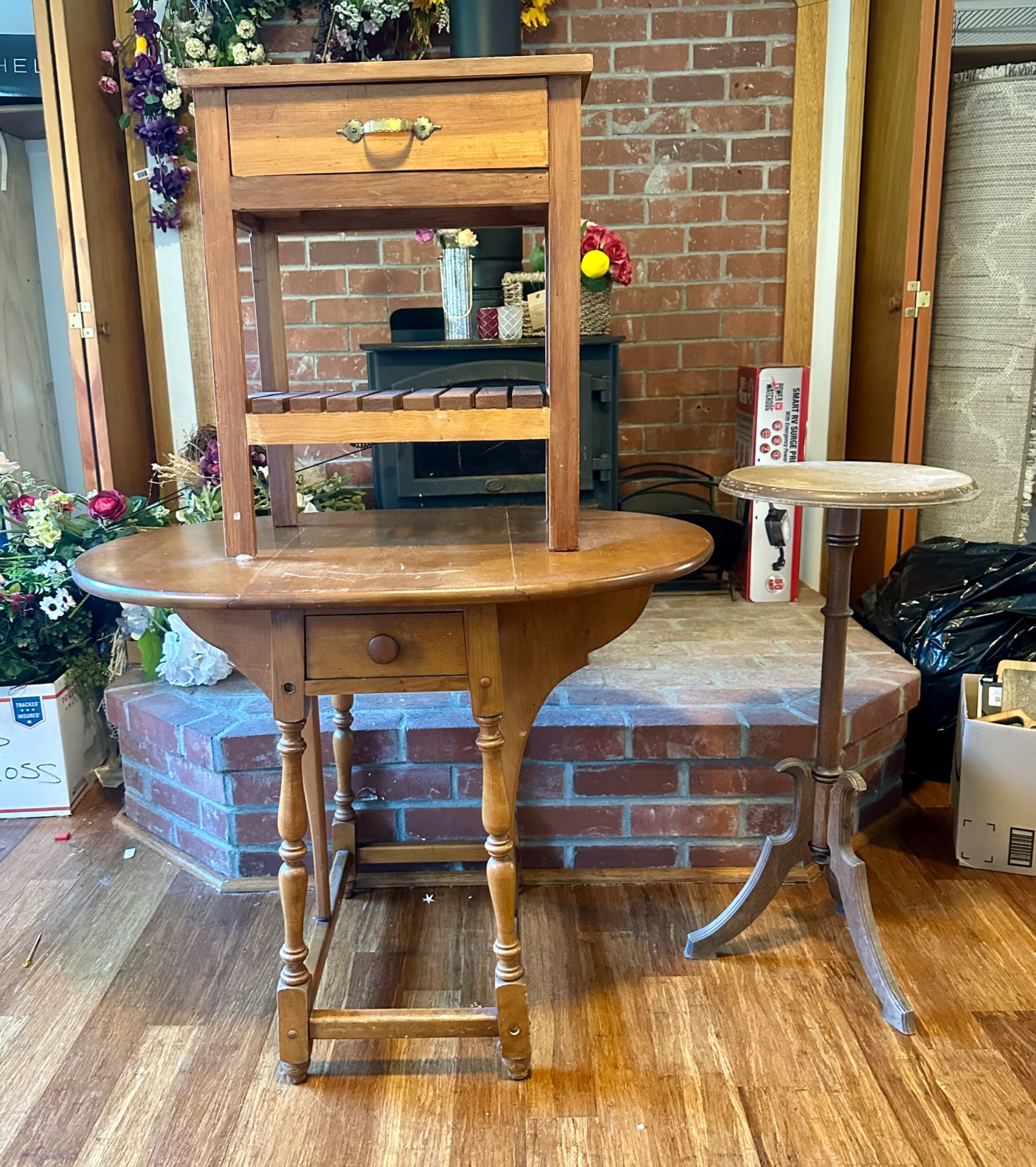 Antique Tables Pedestal Table - Dia: 13 5/8” x 30 1/2”H Side Table w/ Drawer & Shelf - 19 3/4” x 12” x 24”H
