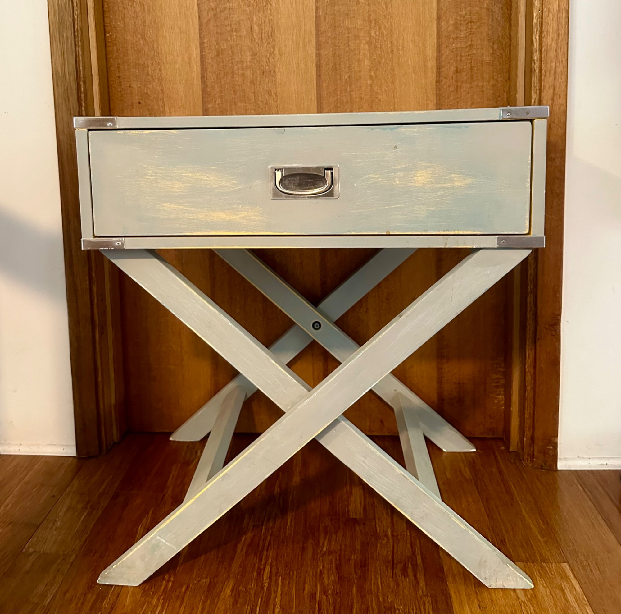 End Table with Silver Metal Tabs on Corners & 1 drawer
