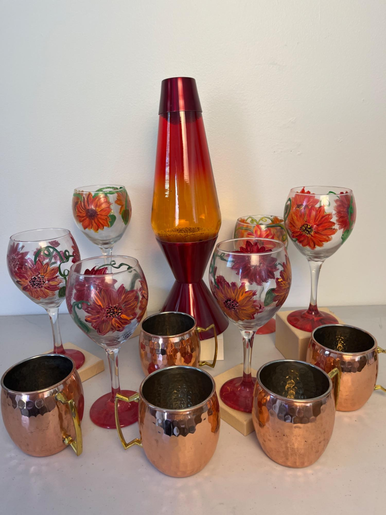 Lava Lamp / Hand Painted Wine Glasses / Moscow Mules