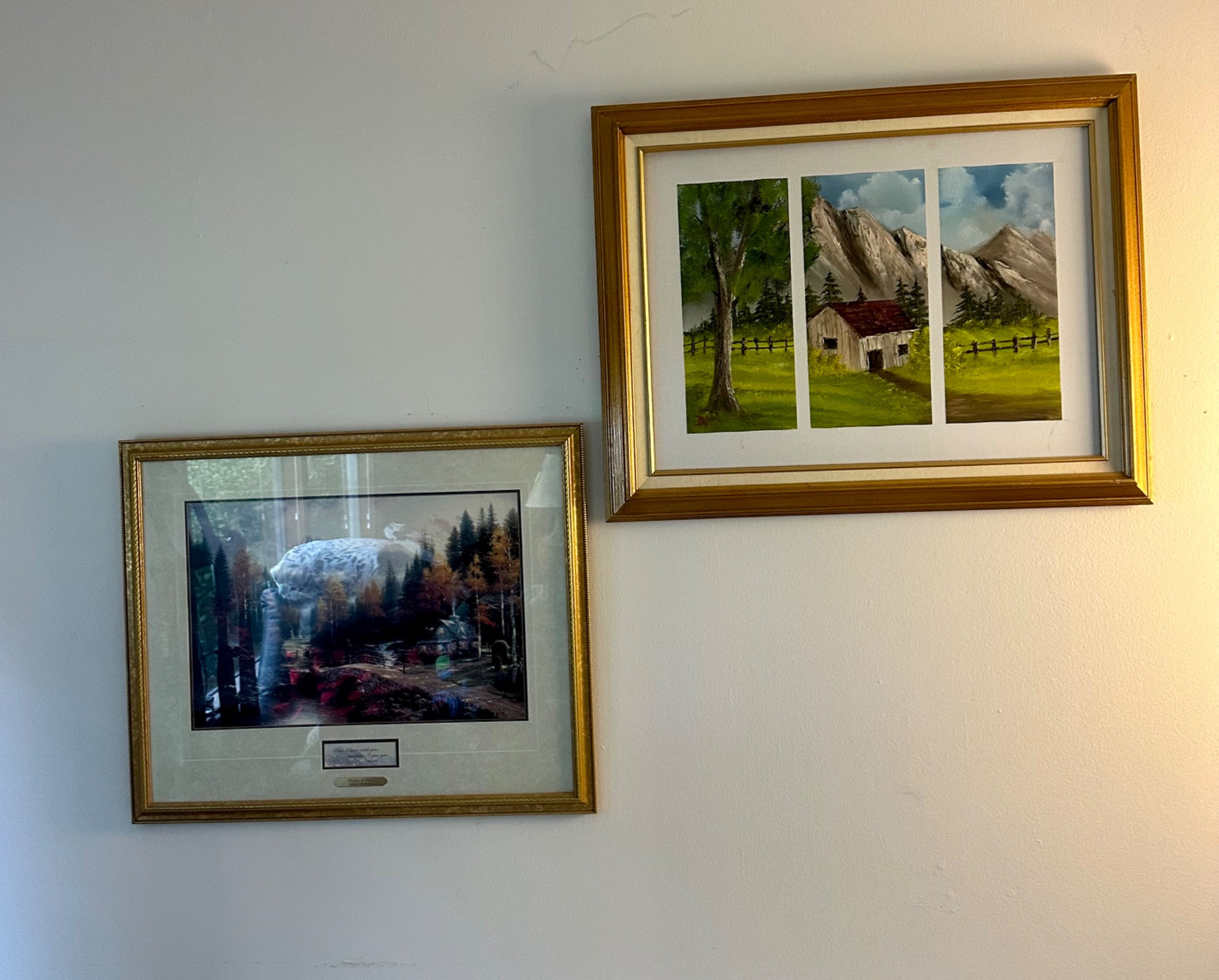 26 1/2” x 21 3/4” Thomas Kinkade “Valley of Peace” print matted certificate of authenticity dan Neumann original oil painting triple panel 29” x 23”