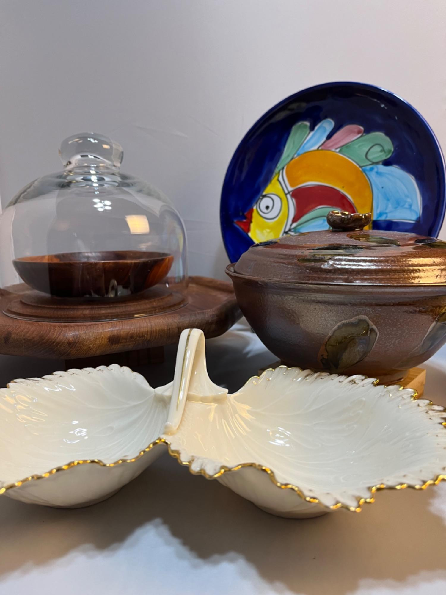 Teak Tray w/Glass Cloche, Lidded Pottery, Lenox, LaMusa Italian Plate