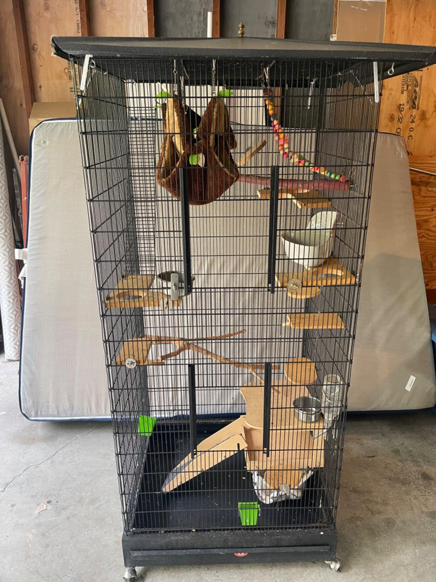 Rolling Animal Cage With Lots of Accessories - Quite Large The family bought this cage new and hasn't been used much. They rescued a baby squirrel and released it back into the wild. Perches, ramps and lots of accessories come with this cage. Cage has wheels for easy transport. This is like new condition.