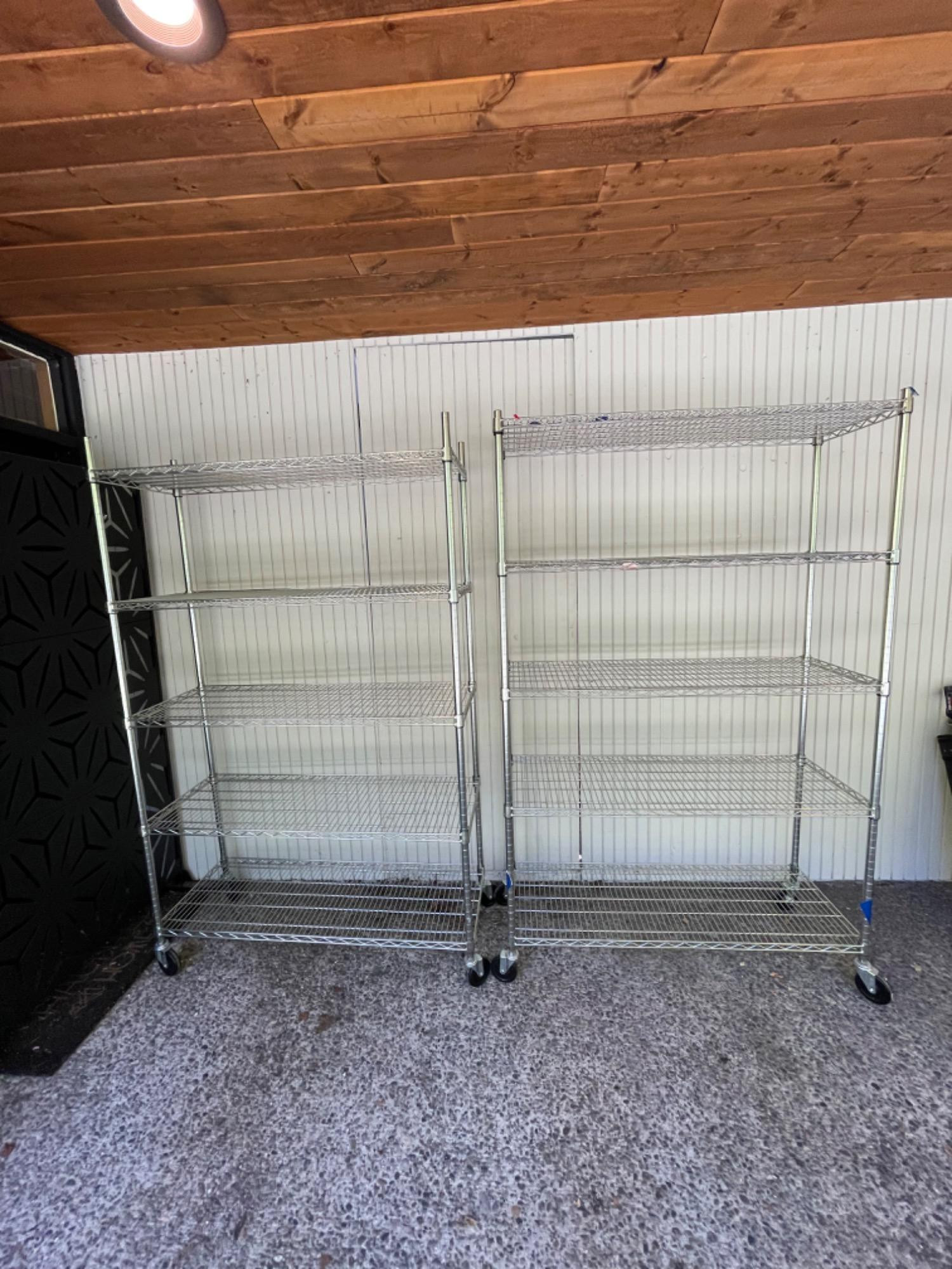 TWO Rolling Racks - Industrial These appear to be Costco brand. Good condition. Sturdy.