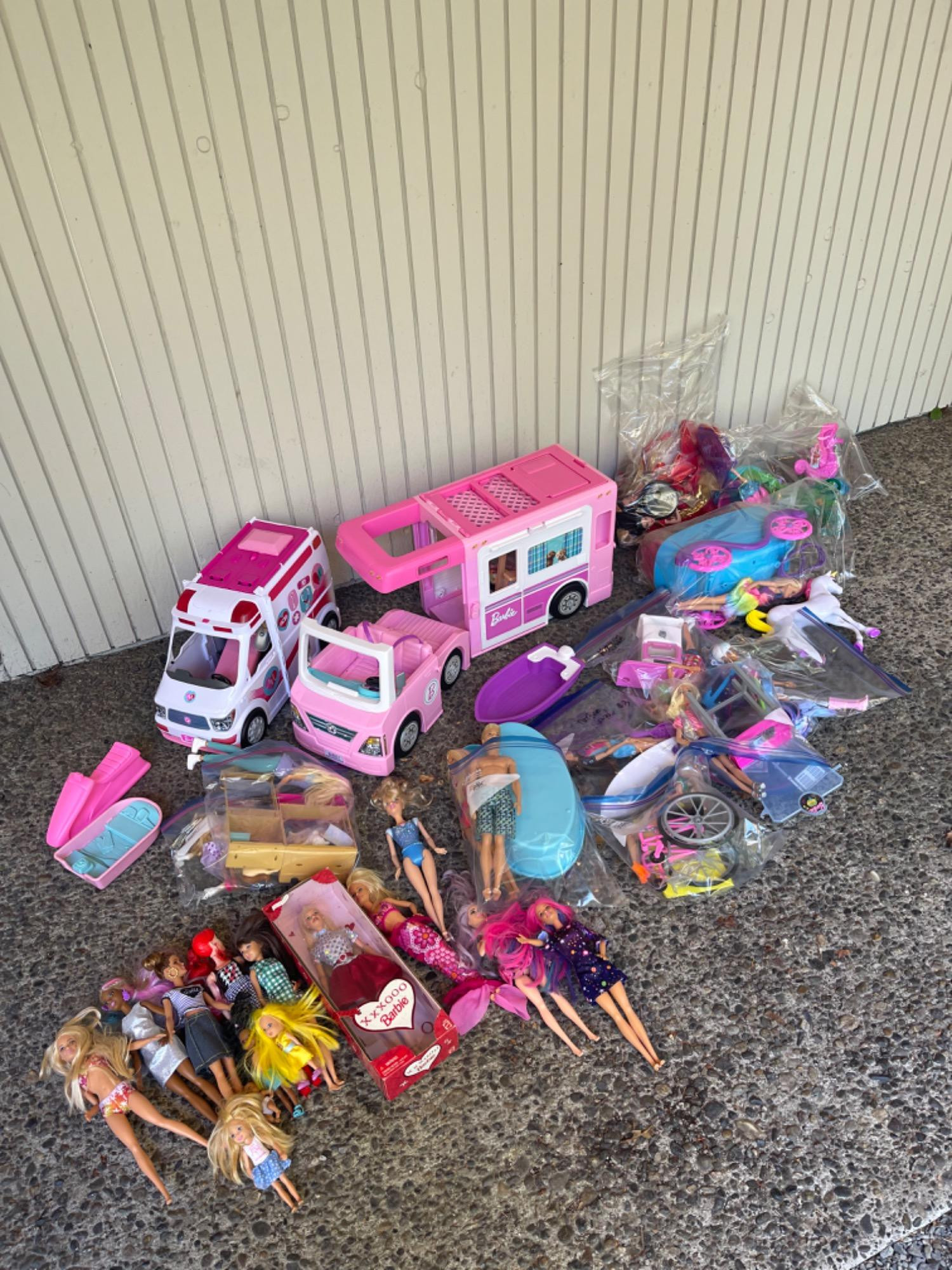 Very Large Barbie Lot-Vehicles, Barbie Sets and Accessories These barbies were well cared for. Most barbies come with the accessories. Ambulance and Horse trailer both are in great condition. There is a lot of value here.