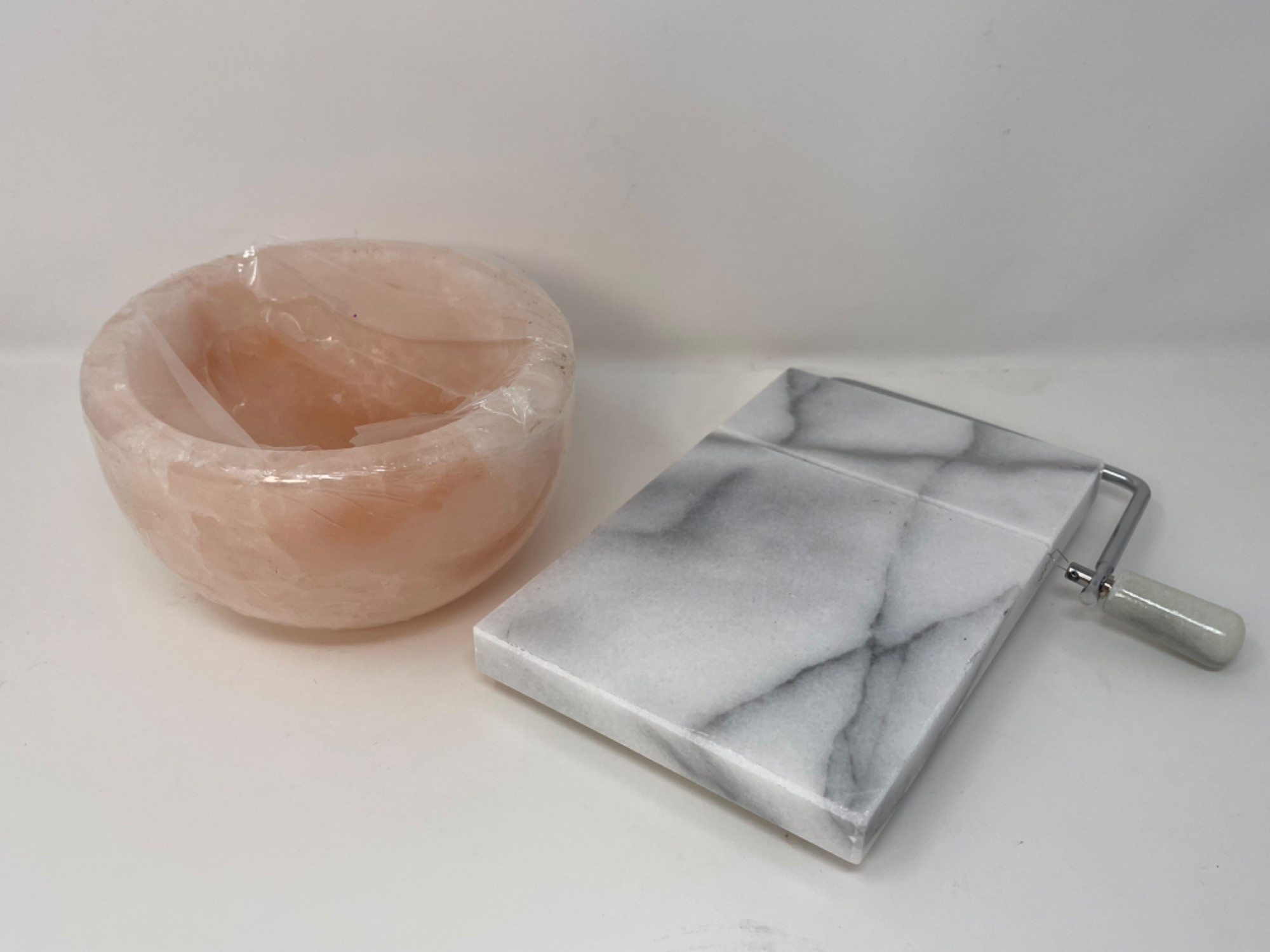 Lot # 163 - Himalayan Salt Bowl And Marble Cheese Slicer