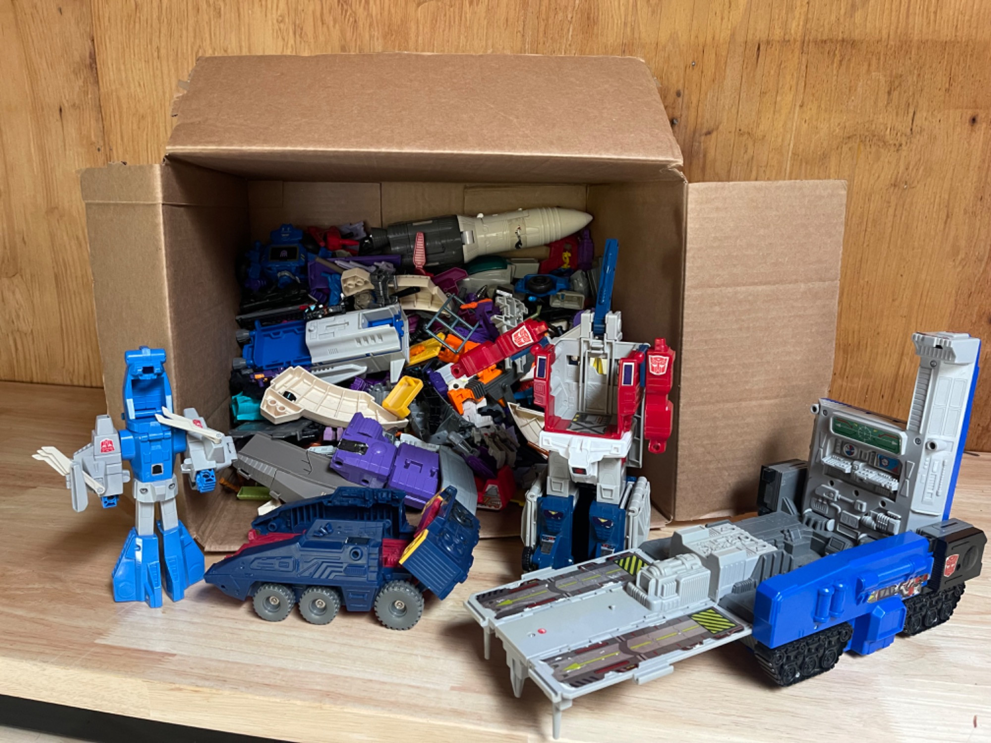 Tons of Transformers Parts! All of these are PARTS, none are full sets. Unsure if all pieces in box are transformers, but most appear to be. Box Measurements: 17.5" L x 13" W x 13" H and is 75% full