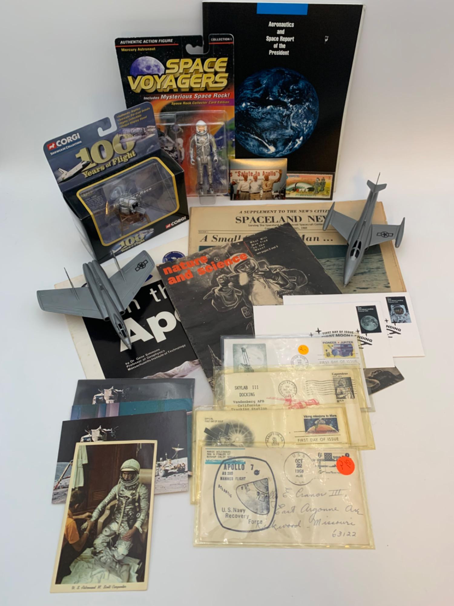 Mixed lot of space-related items: Space Voyagers Mercury Astronaut figure from Action Products.