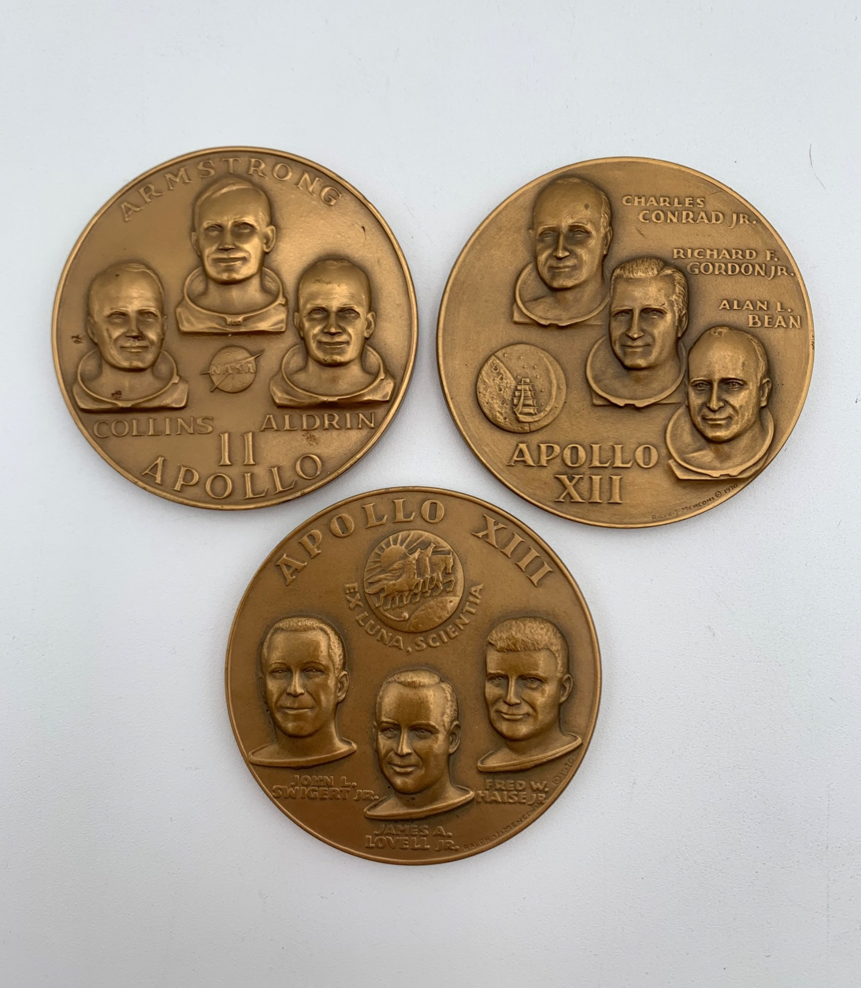 medals for 3 Apollo missions – all are from Medallic Art Company & incised
