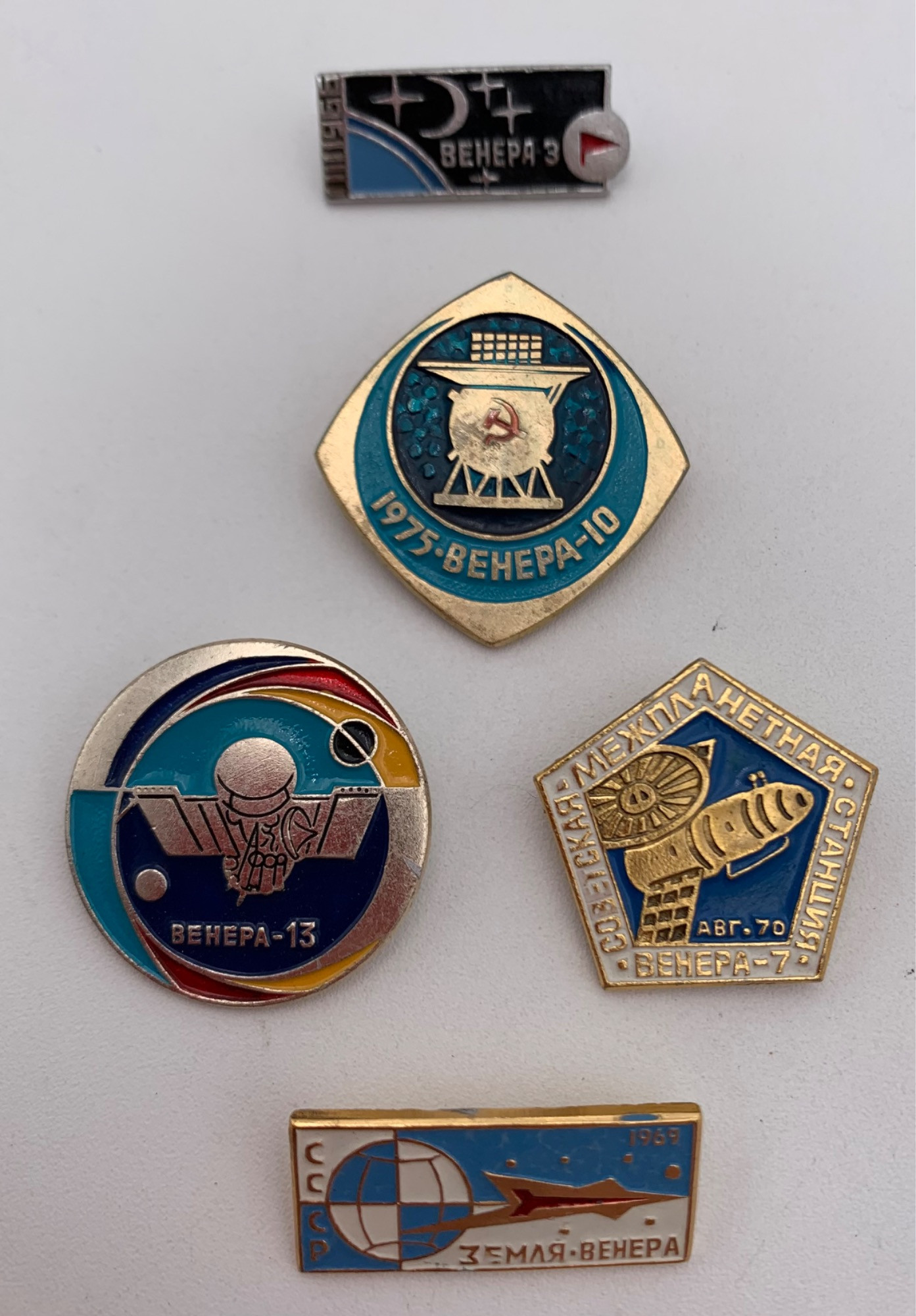 space collector pins in metal – all 5 from Venera (Venus). All in terrific