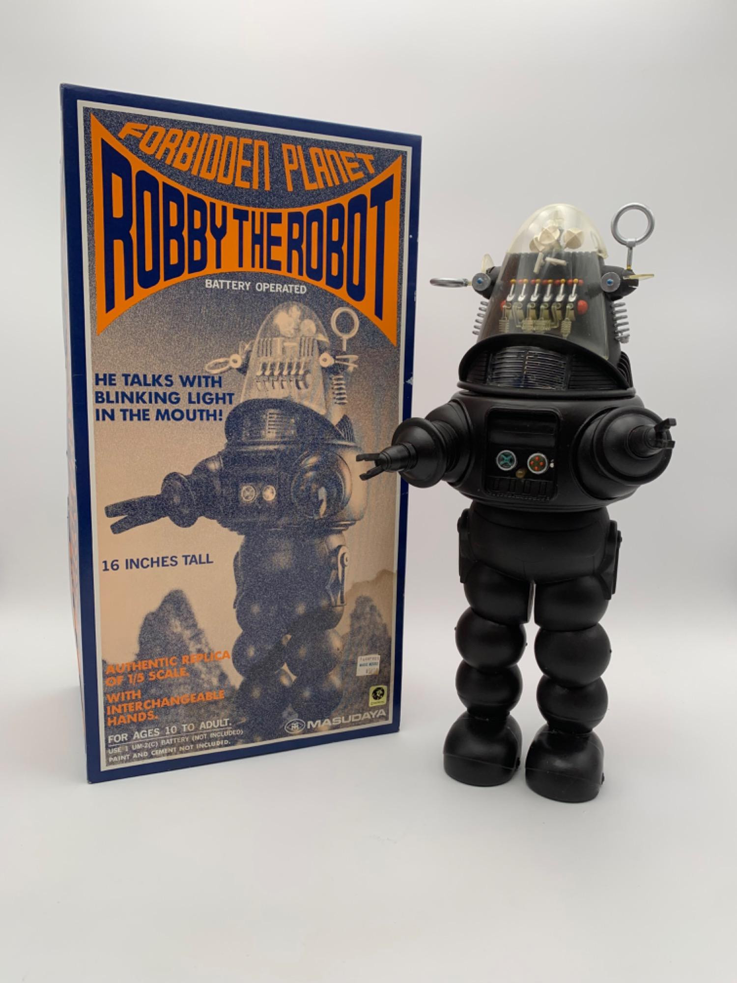 Masudaya of Japan comes this very large Robby the Robot figure in heavy black