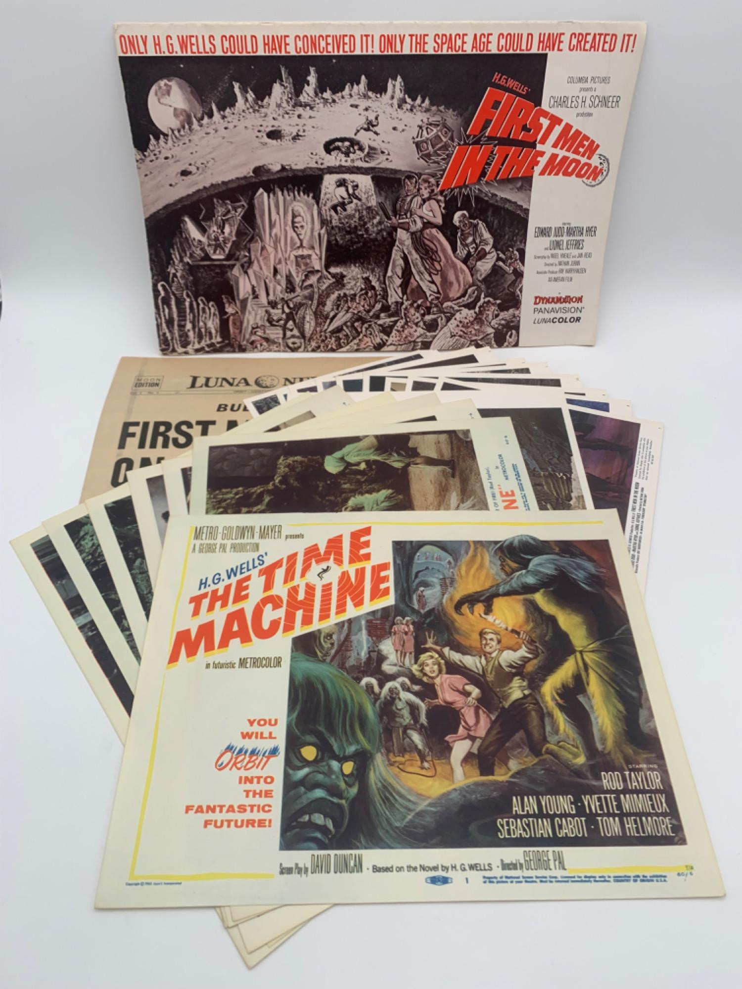 movie theater lobby cards for “HG Wells’ Time Machine” movie of 1960. Cheesy
