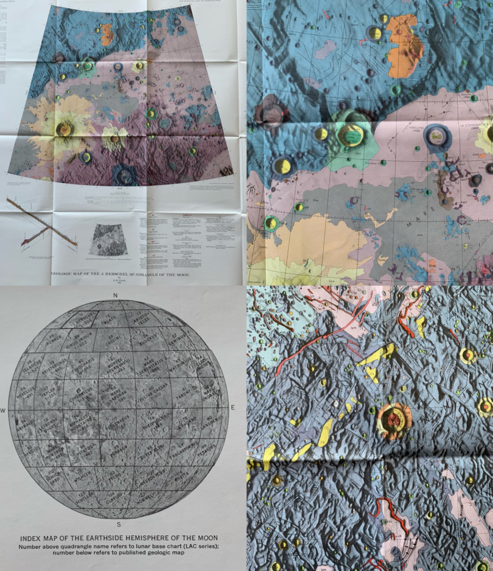 REGION OF THE MOON (M.H. Carr). 1965. Map I-462 (LAC-40). Measures shy 30" H x shy 45" W. GEOLOGIC MAP OF THE J. HERSCHEL QUADRANGLE OF