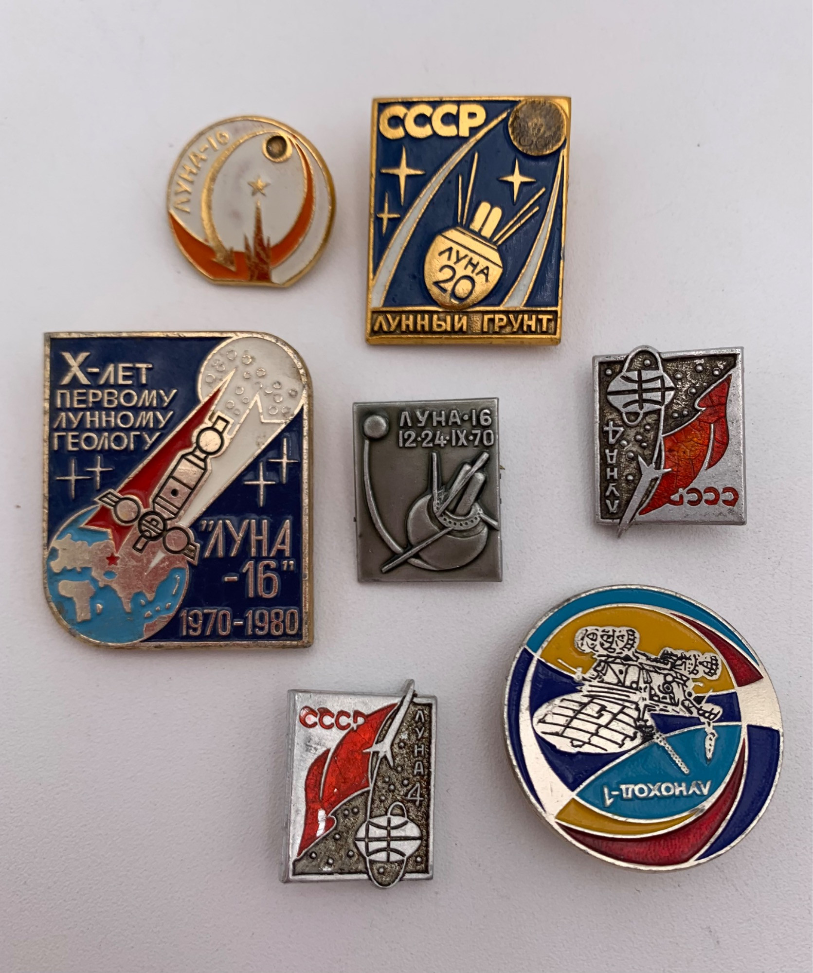 space collector pins in metal – all 7 from Luna missions. All in terrific condition. See