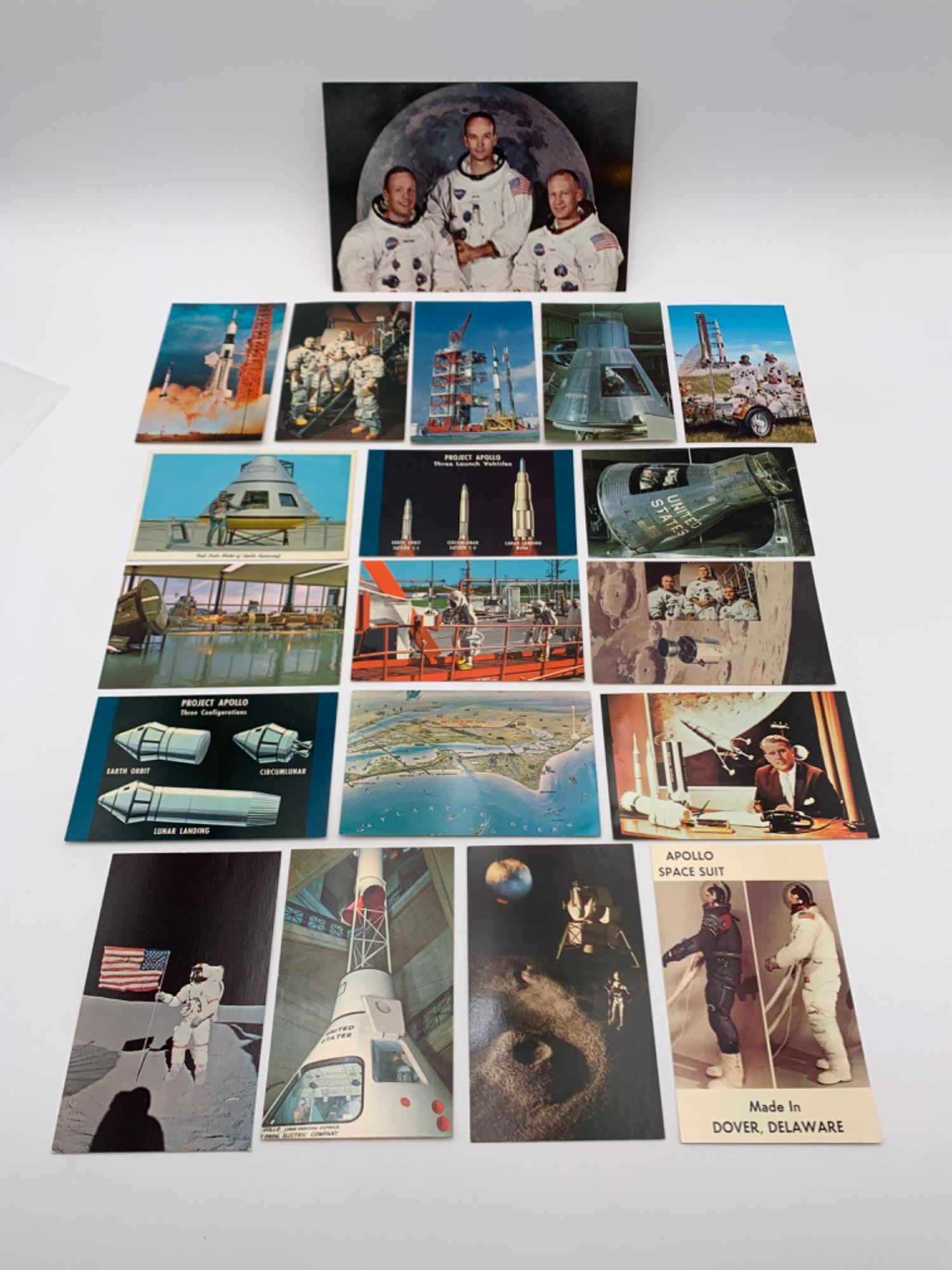 Postcards – 18 “normal” size and one larger. All but one are unused – the used