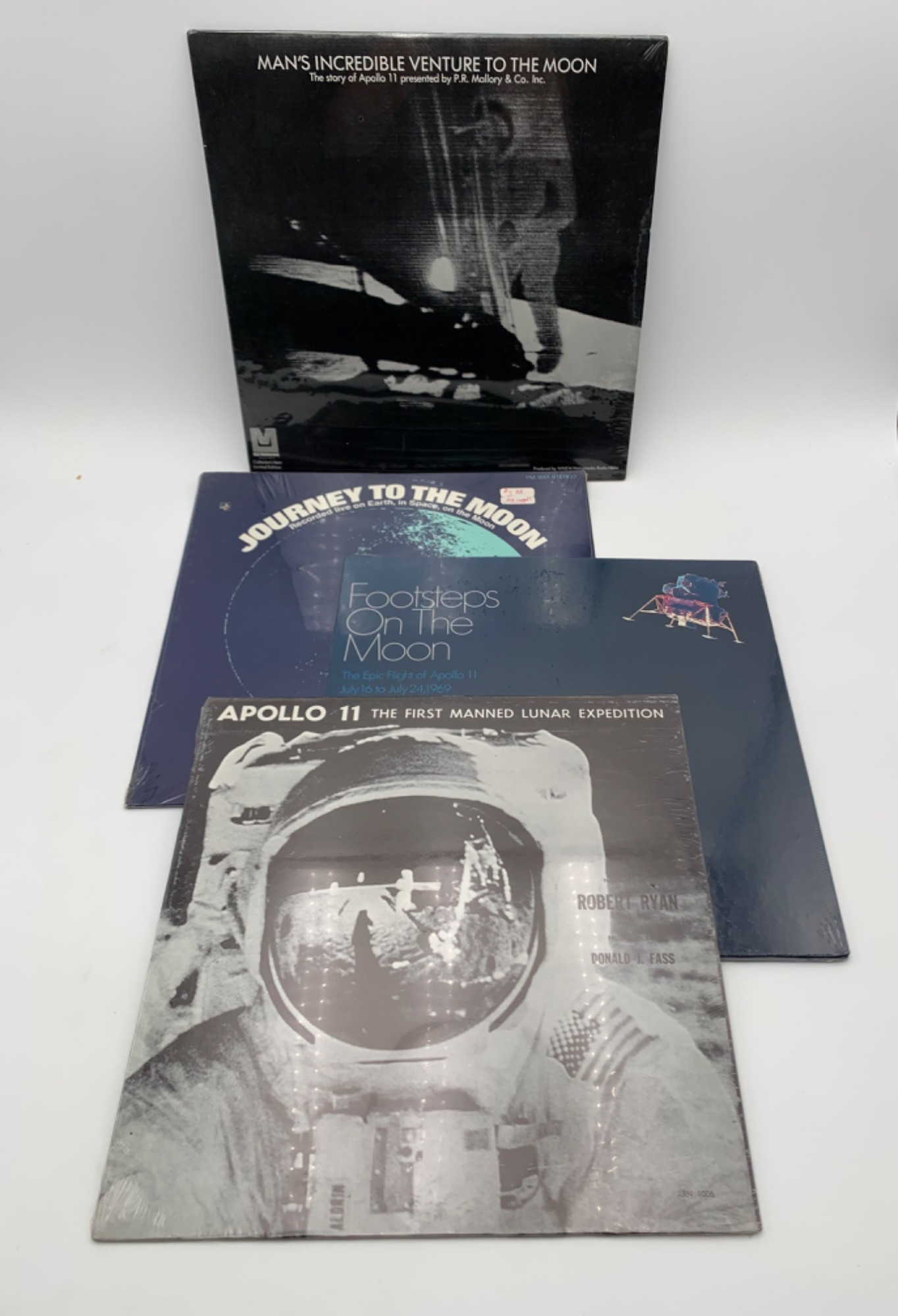 Group of 4 unopened LPs chronicling the moon landing: “Journey to the Moon - Recorded Live on Earth,
