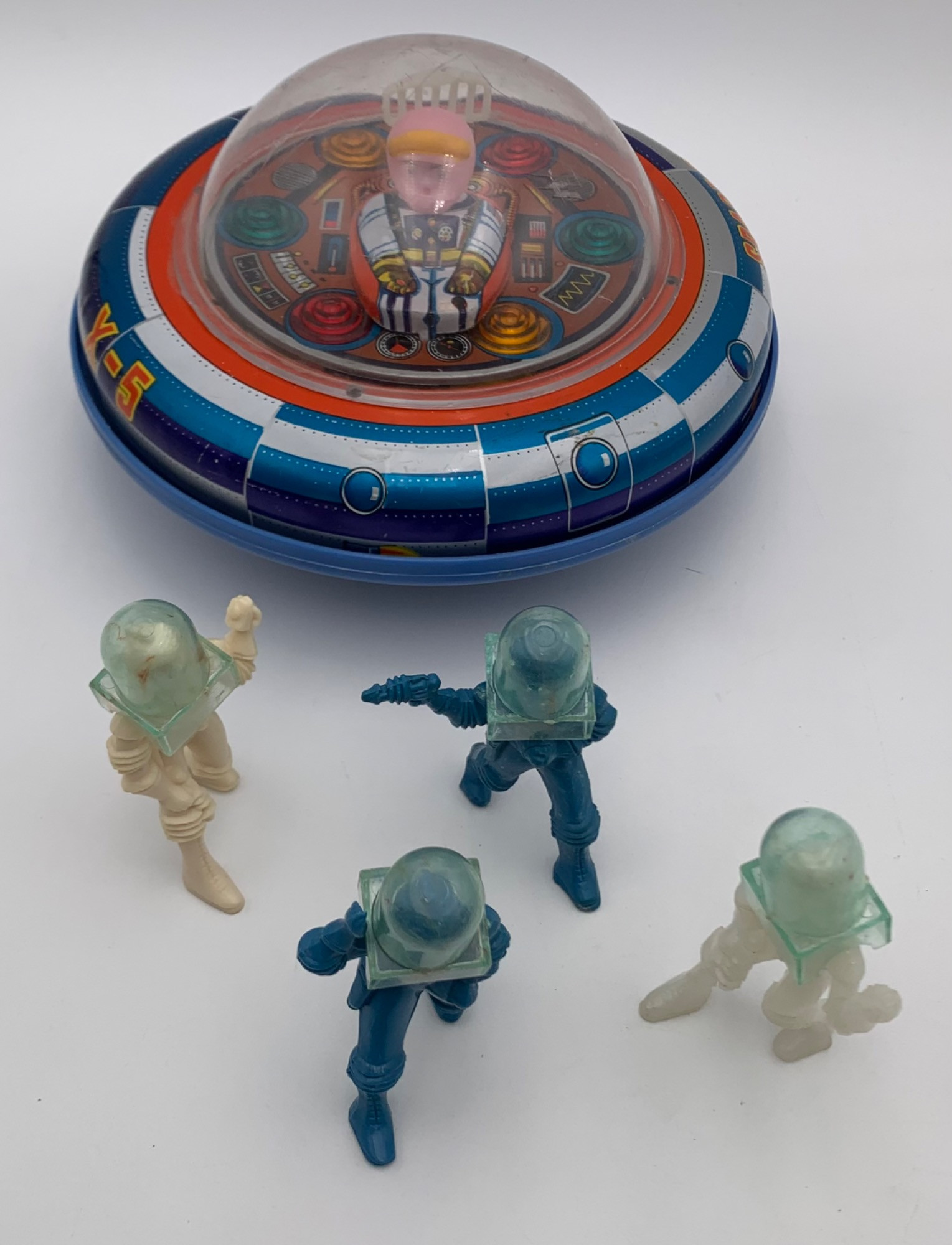 litho flying saucer. This saucer looks great with bright colors, fun astronaut at