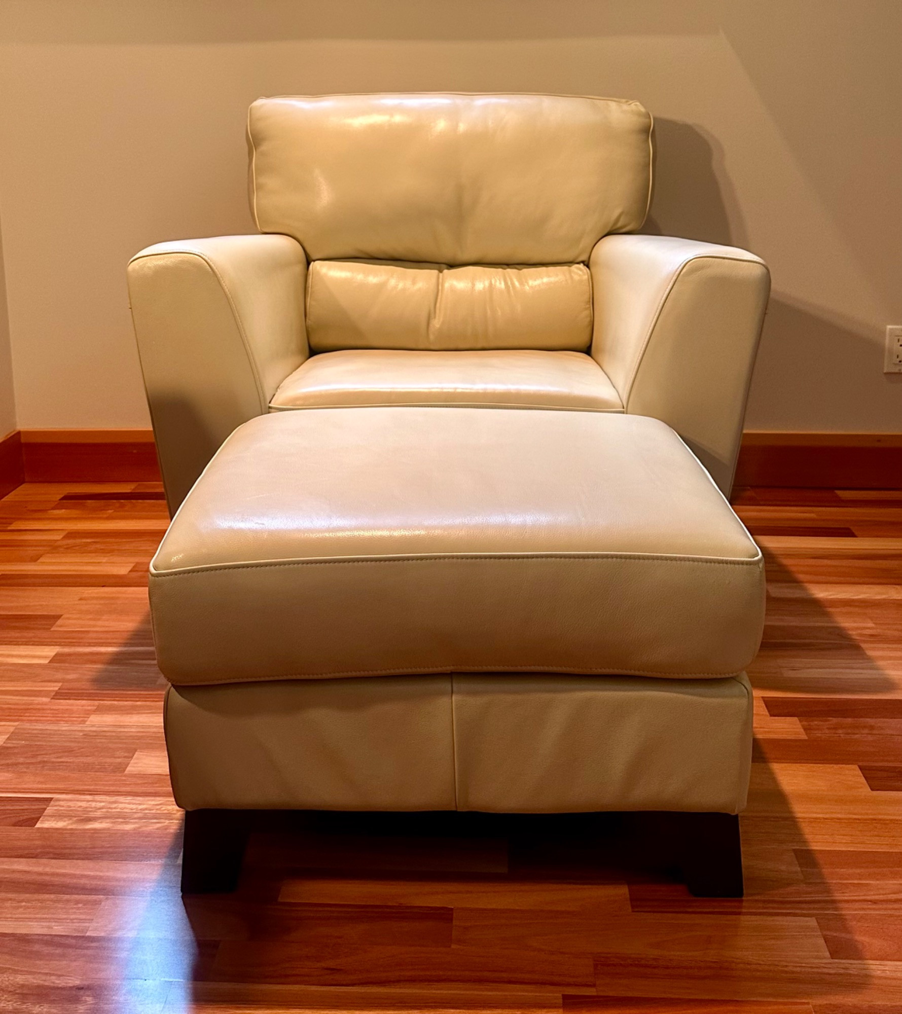 Pebble Leather Chair with Ottoman Accent Chair/ Ottoman Soft pebble leather Color - bone