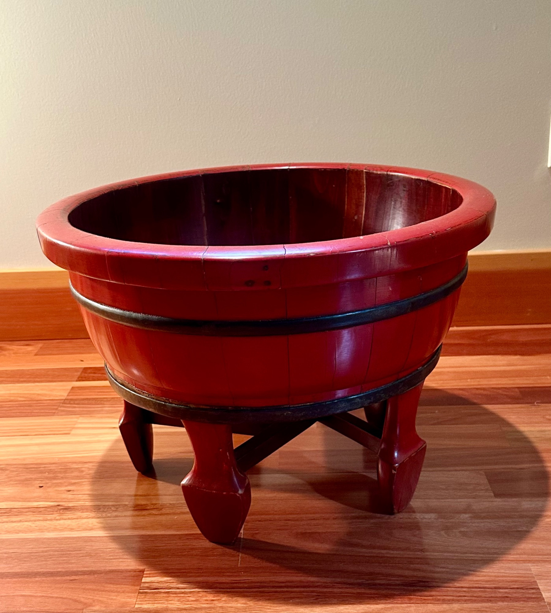 Lot # 23 - Chinese Wooden Red Lacquer Basin Planter #2