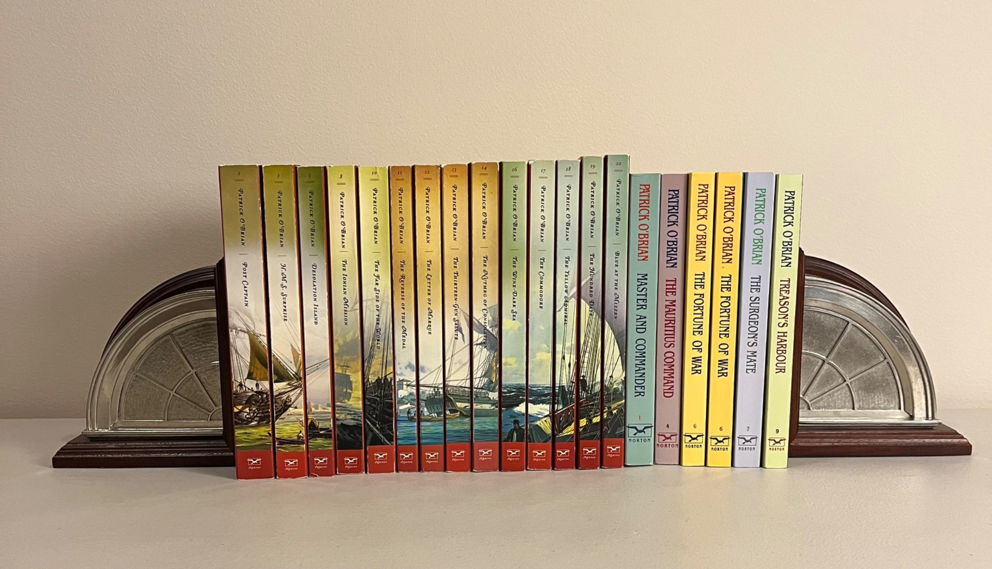 Kirk Stieff Pewter & Mahogany Bookends & Patrick O'Brian Books