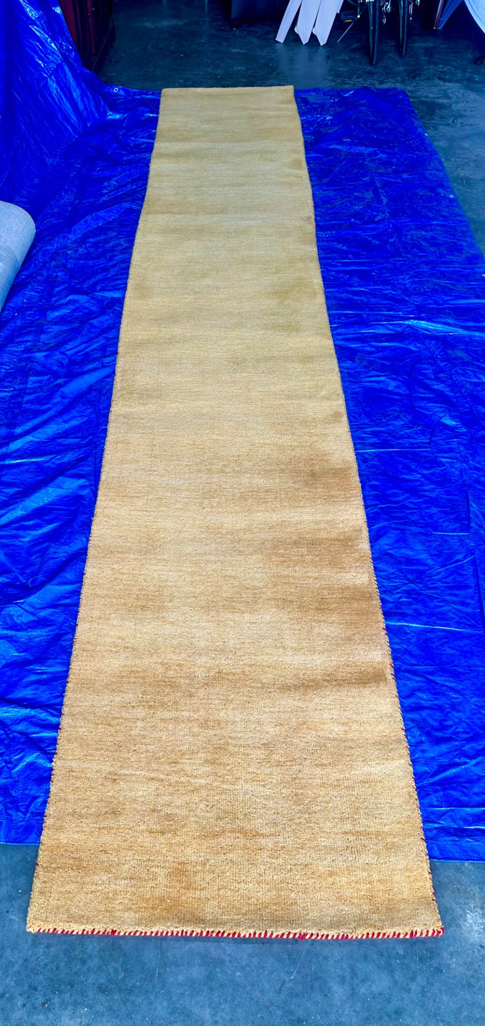 Wool Yellow Solid Gabbeh Runner Rug 16’ 5" x 2’ 7" Very Good Condition Pictures really don't capture the beauty of this runner
