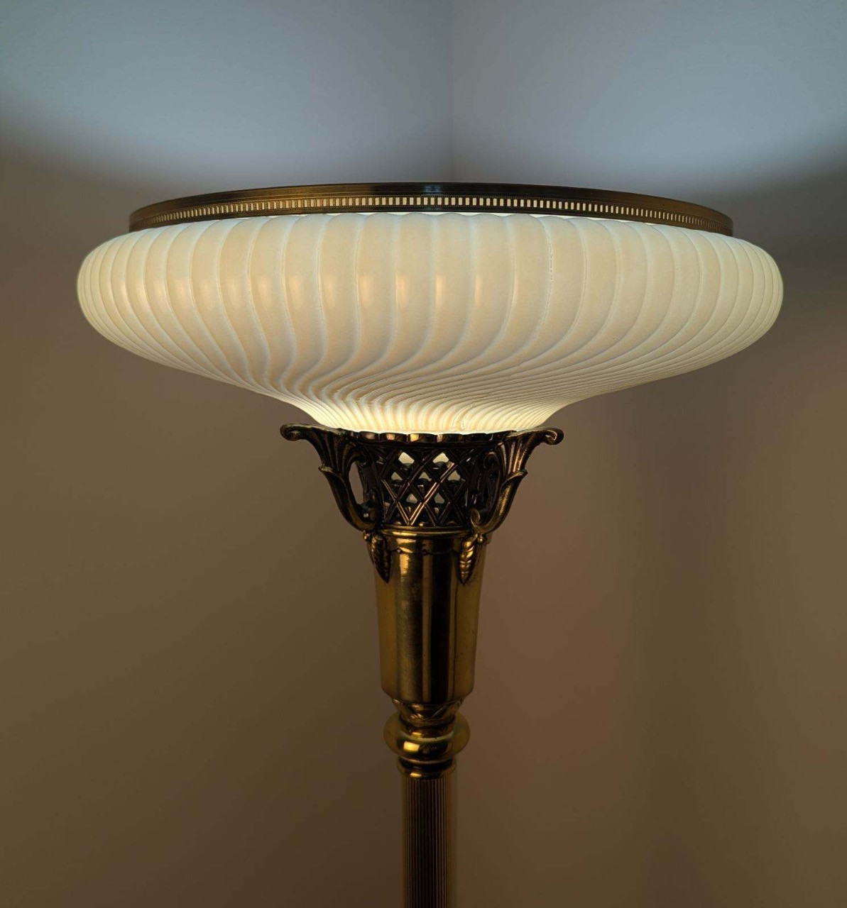 Brass Torchiere Floor Lamp w/ Art Glass Shade #1