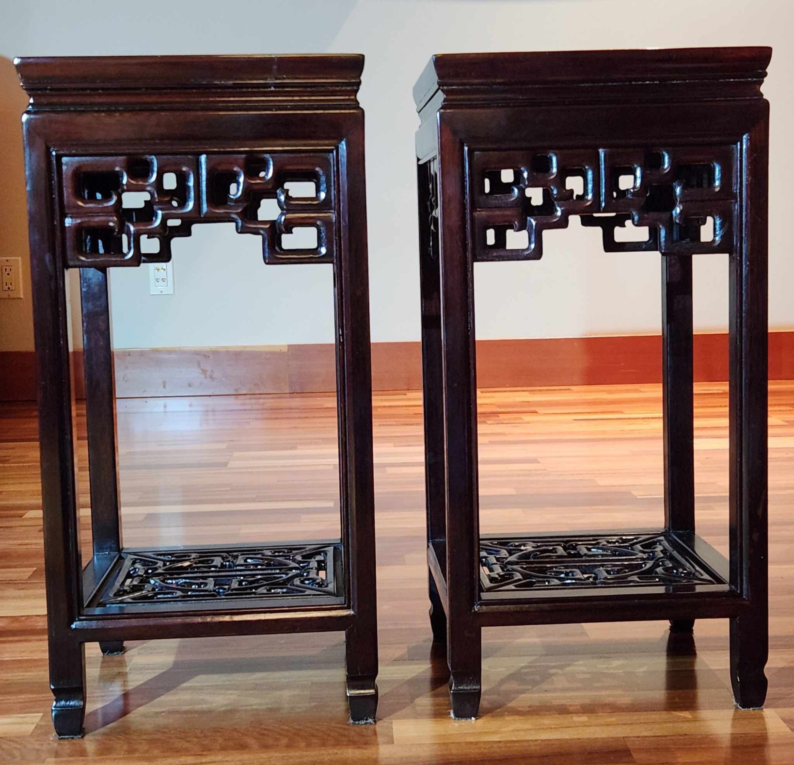 2 Chinese Wooden Lacquer Lamp Stands Very Good Condition / Quality