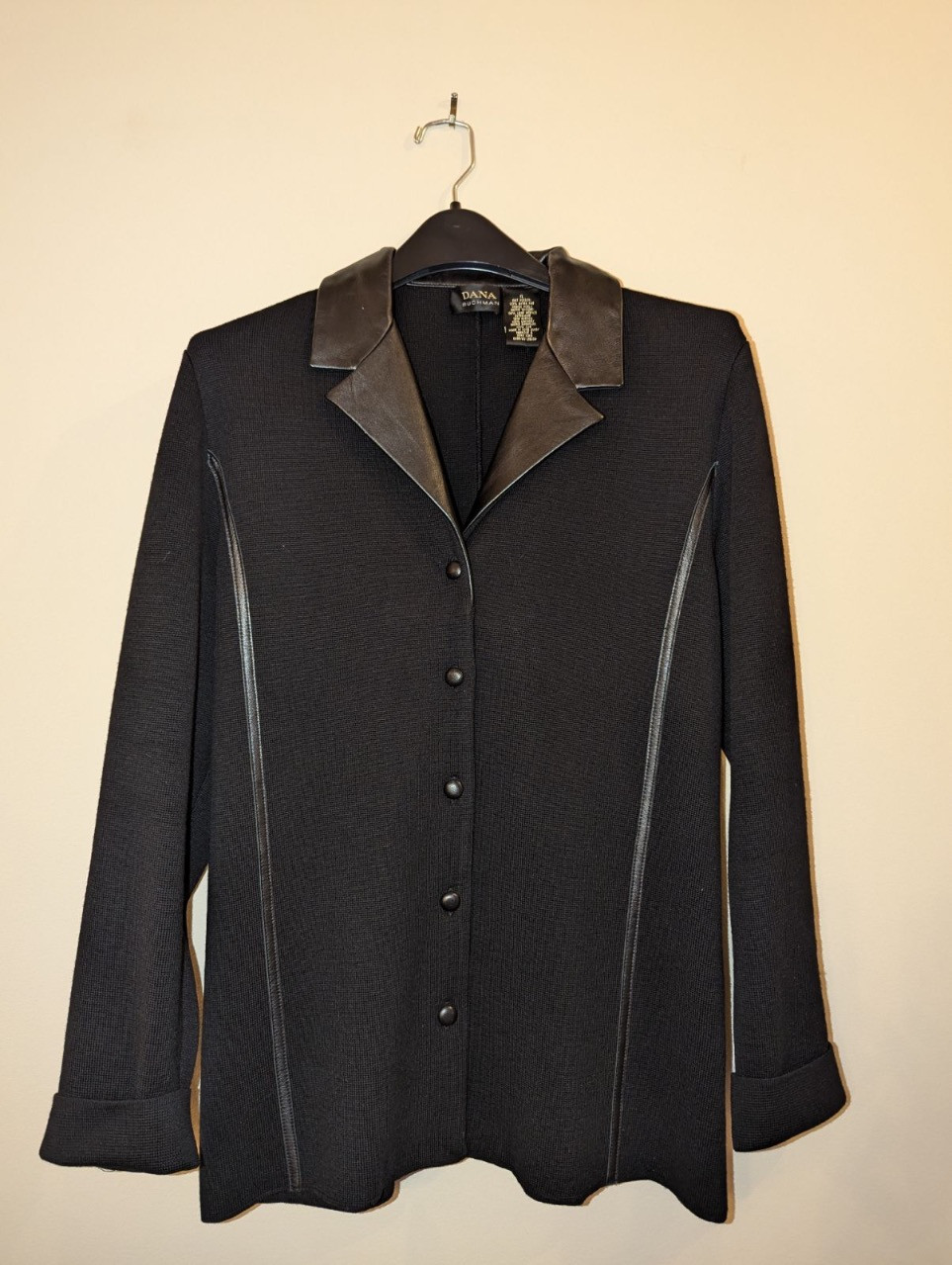 Lot # 147 - Dana Buchman Black XL Extra Fine Merino Wool & Leather Sweater