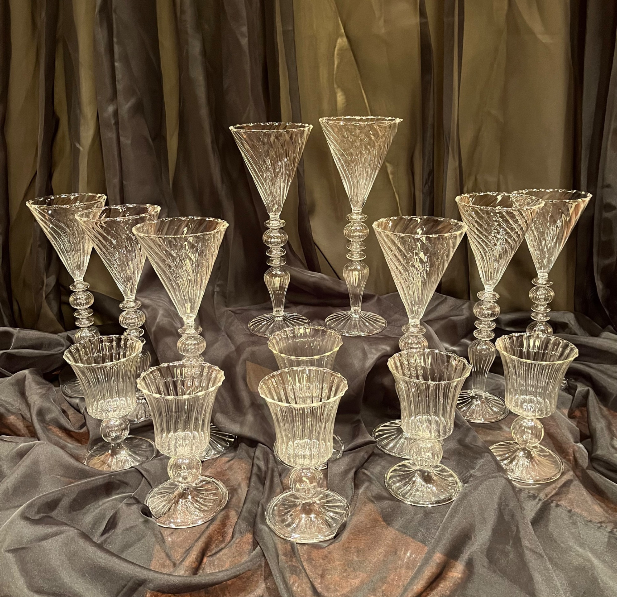 Vintage Hand Blown Crystal Venetian Optic Swirl Fluted Glassware