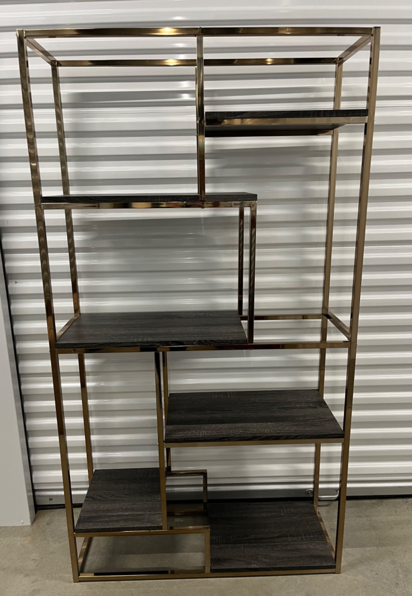 Scaola Rustic Gray Oak & Champagne Metal Etagere Bookshelf