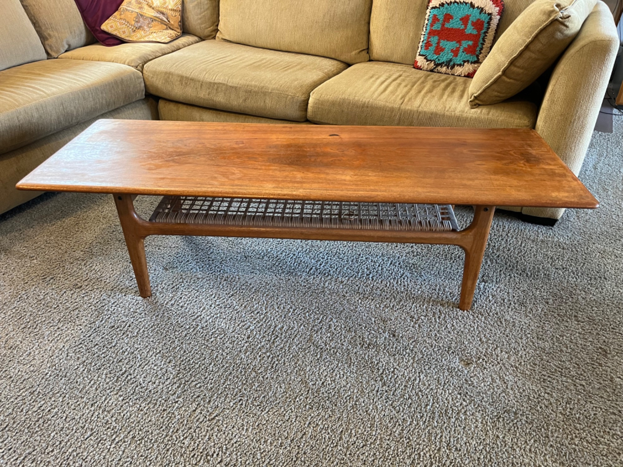 Sleek Scandinavian Modern Teak and Cane Coffee Table by Trioh Møbler.