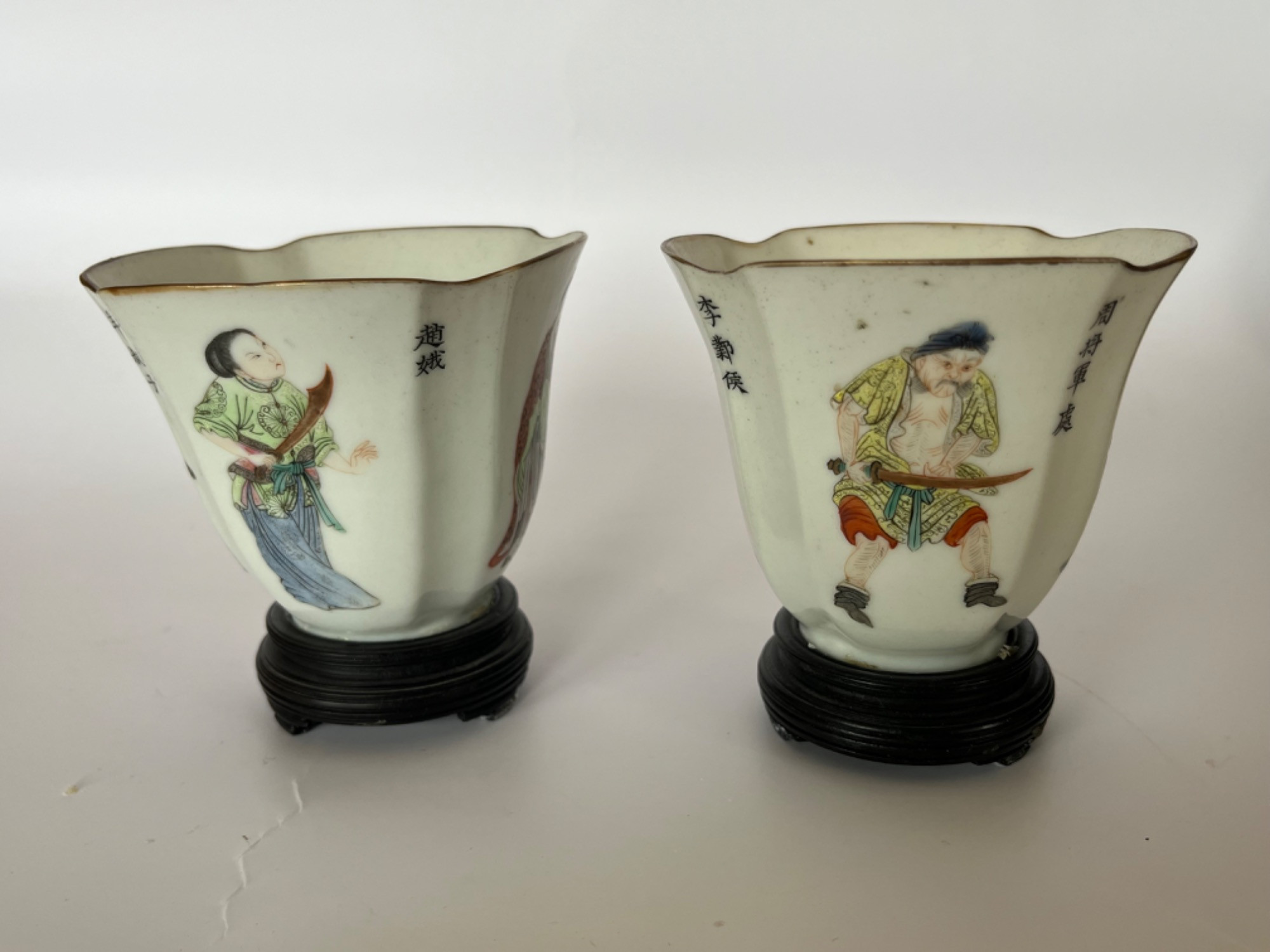 Antique Porcelain Asian Tea Cups- Court Style and Calligraphy. Antique items offered for auction on the Site are sold “as is”. We endeavor to describe and display the items accurately and truthfully; however, we cannot guarantee the accuracy or reliability of any item’s description or condition. We strongly encourage all bidders to review images, descriptions, and condition reports and to contact us for additional information prior to bidding.