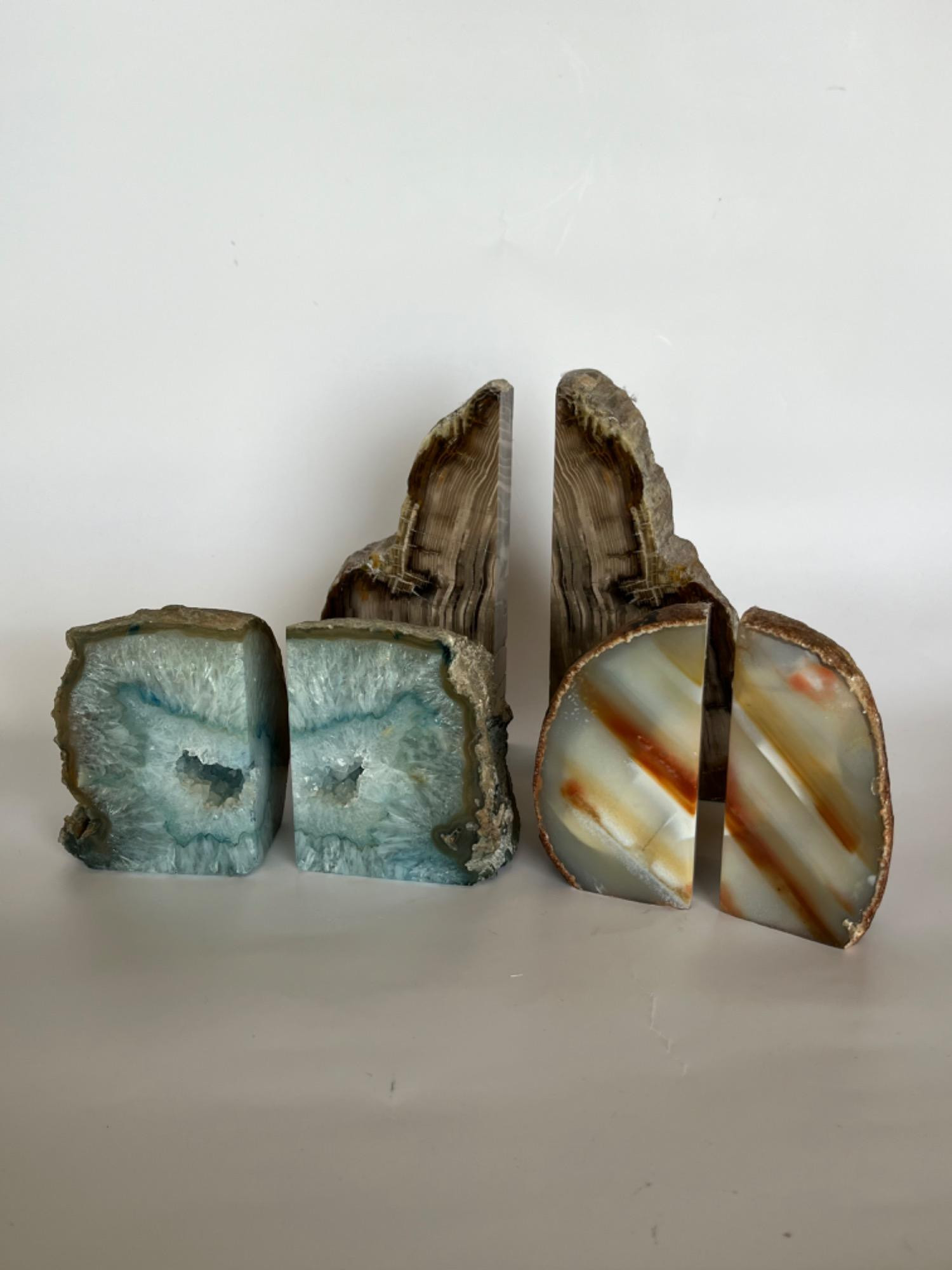Geode and Petrified Wood Bookends- 3 Sets Total Measures up to 7” tall