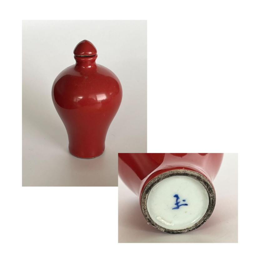 Ox Blood Red Porcelain Snuff Bottle. Antique items offered for auction on the Site are sold “as is”. We endeavor to describe and display the items accurately and truthfully; however, we cannot guarantee the accuracy or reliability of any item’s description or condition. We strongly encourage all bidders to review images, descriptions, and condition reports and to contact us for additional information prior to bidding.