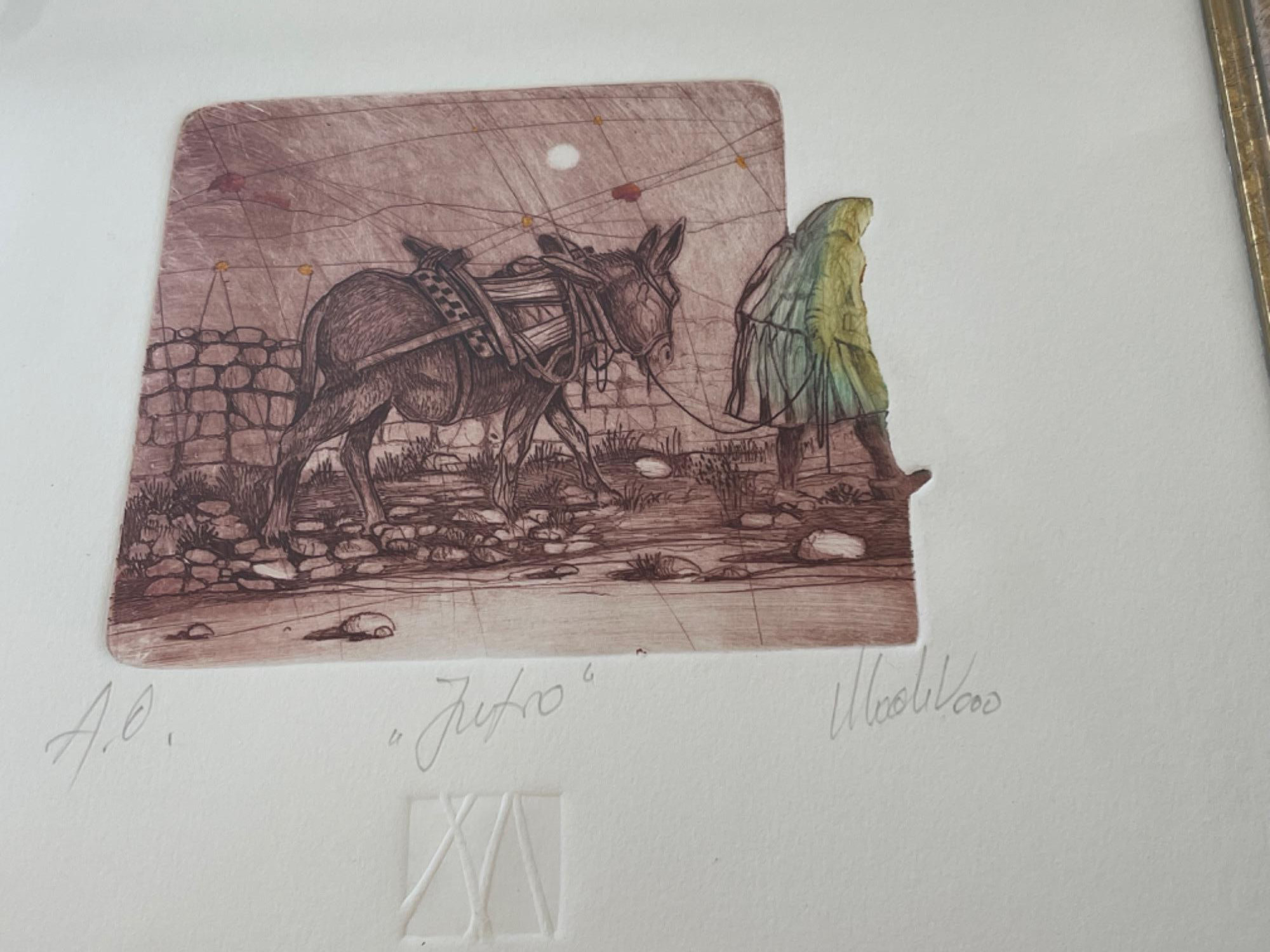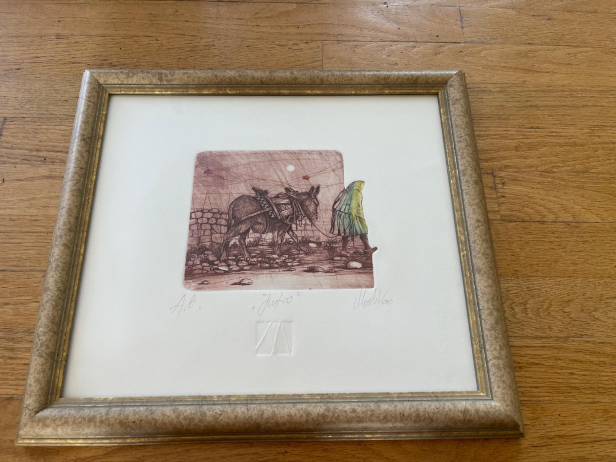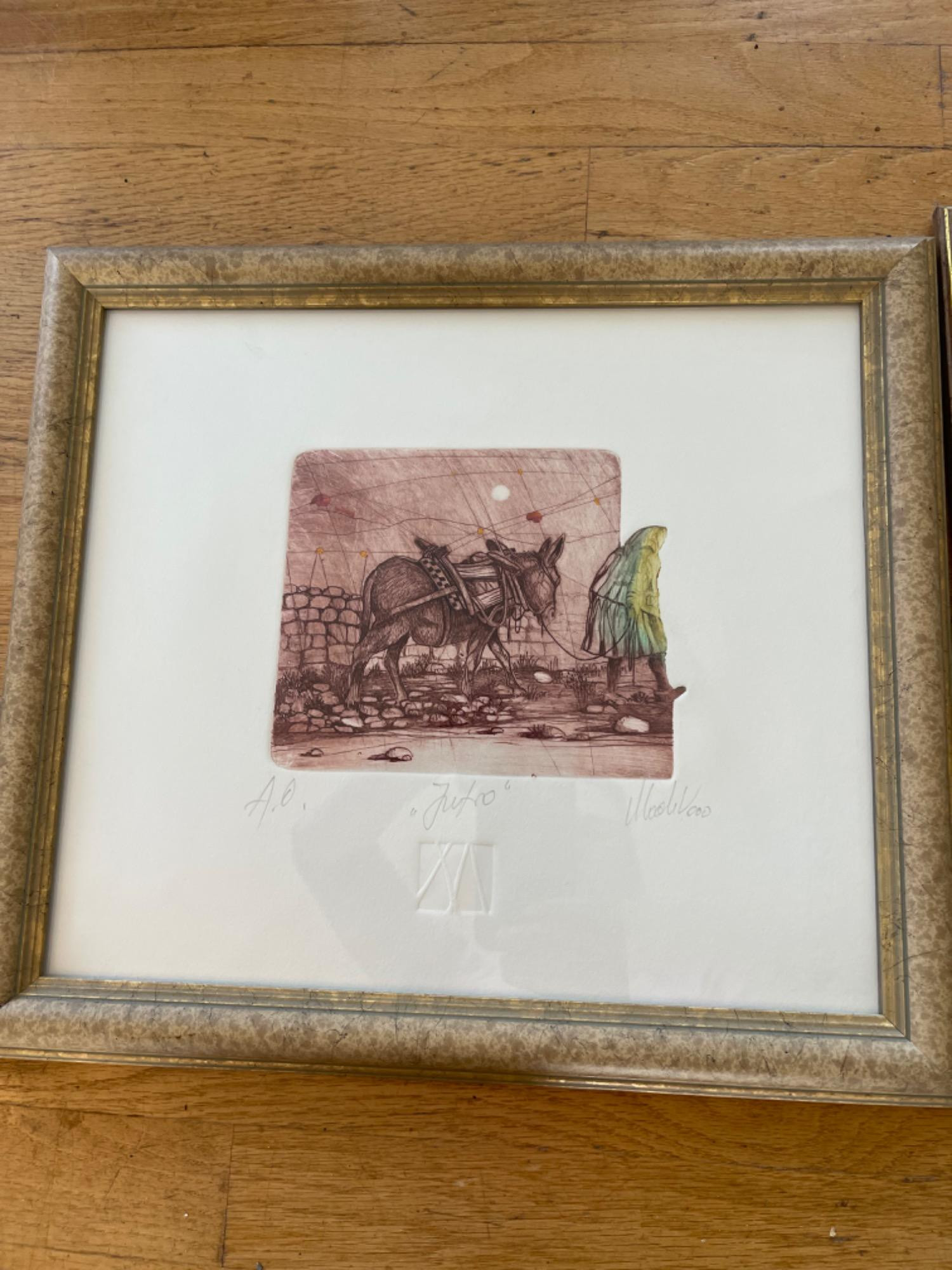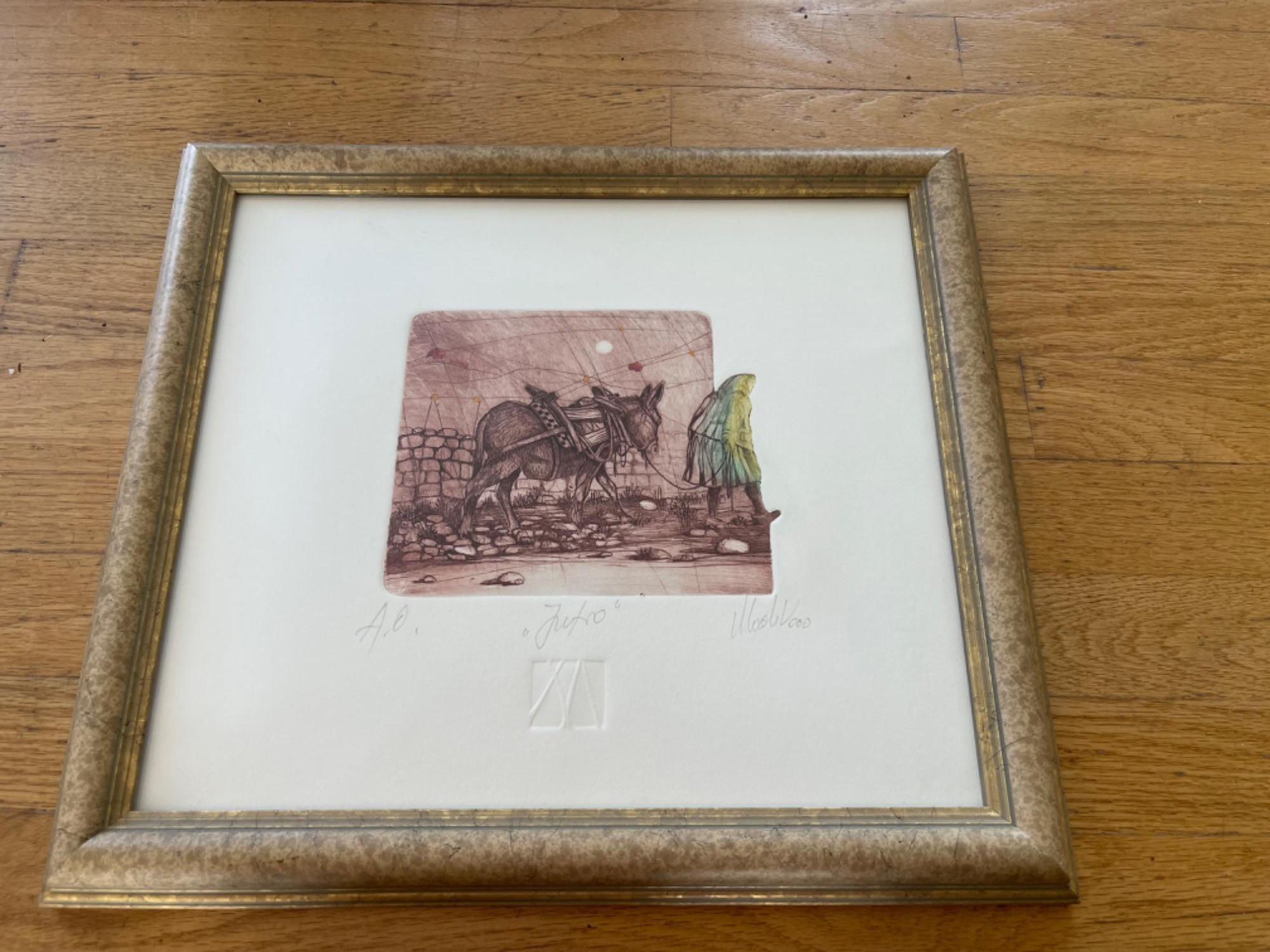 Two Signed Art Pieces. Donkey Print-16 x 14 Building- 18 T x 10W