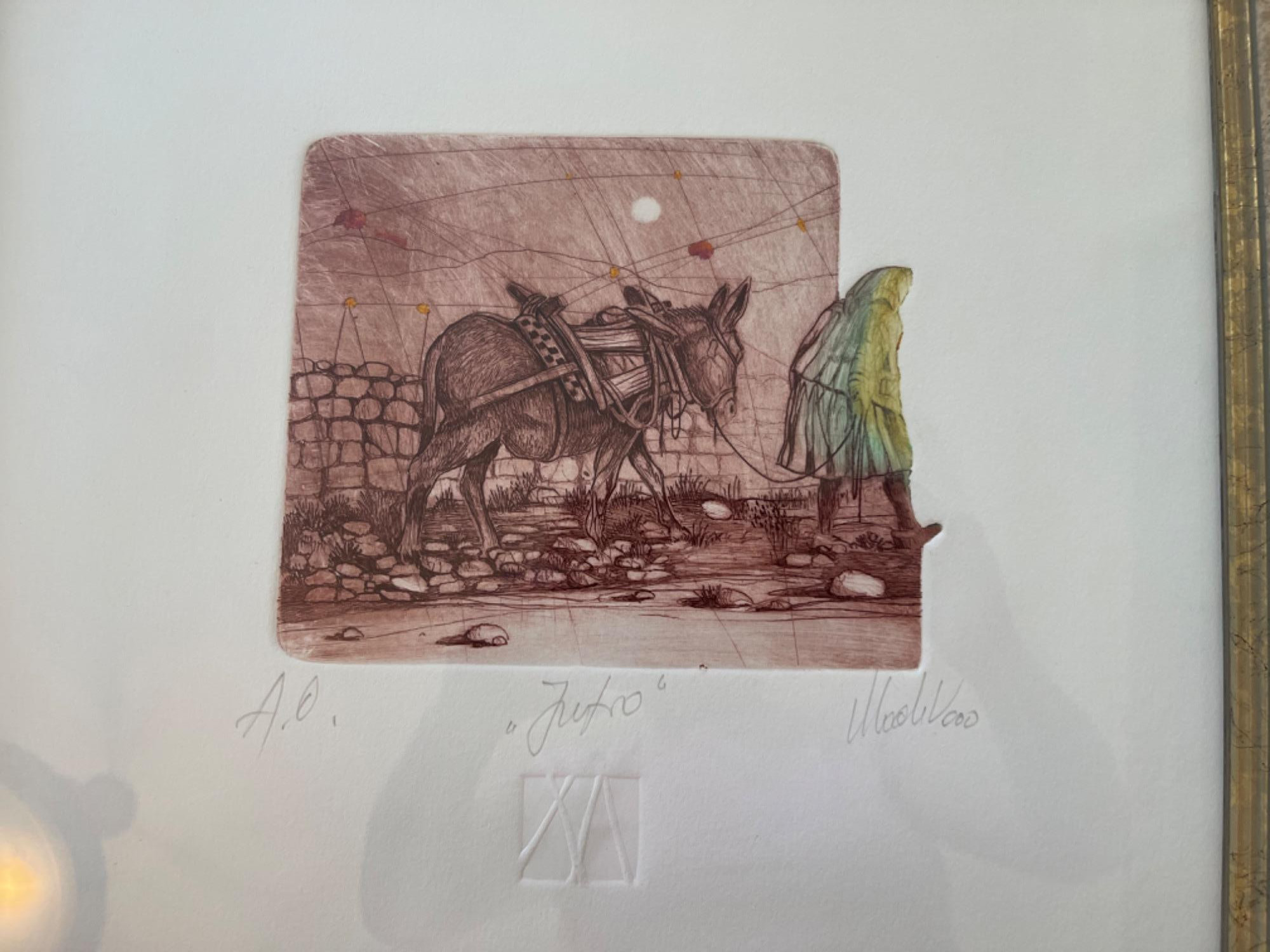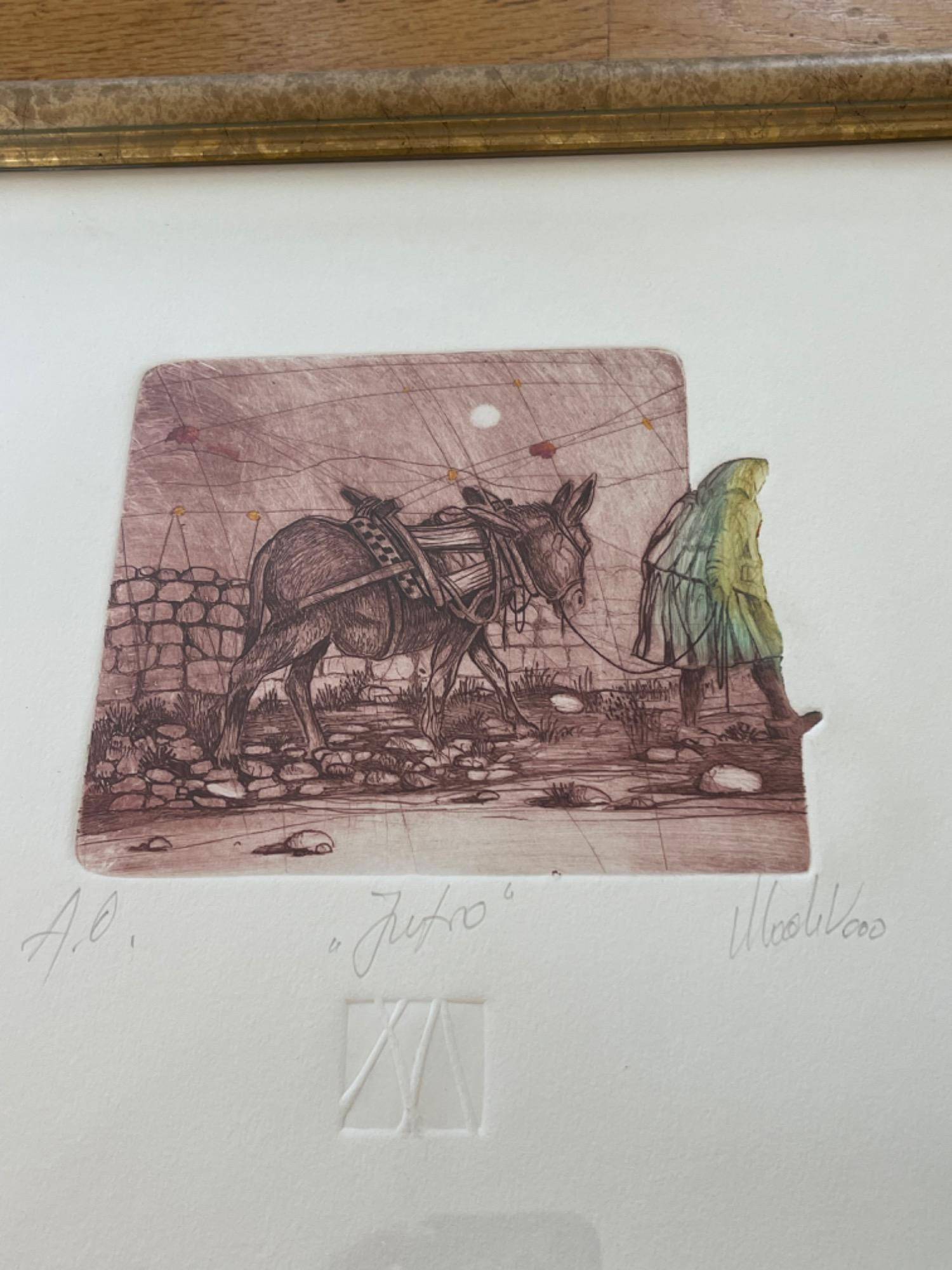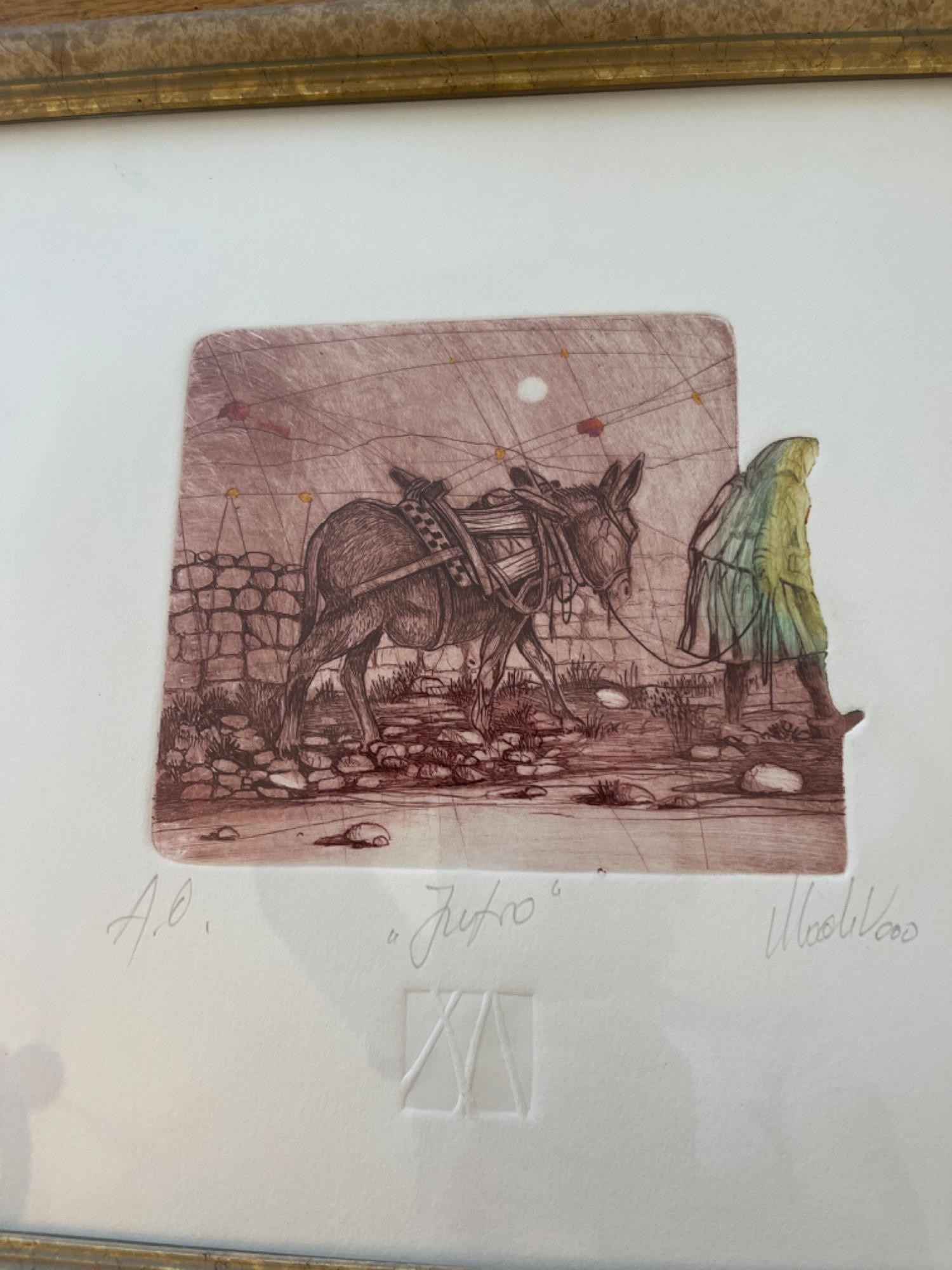 Two Signed Art Pieces. Donkey Print-16 x 14 Building- 18 T x 10W