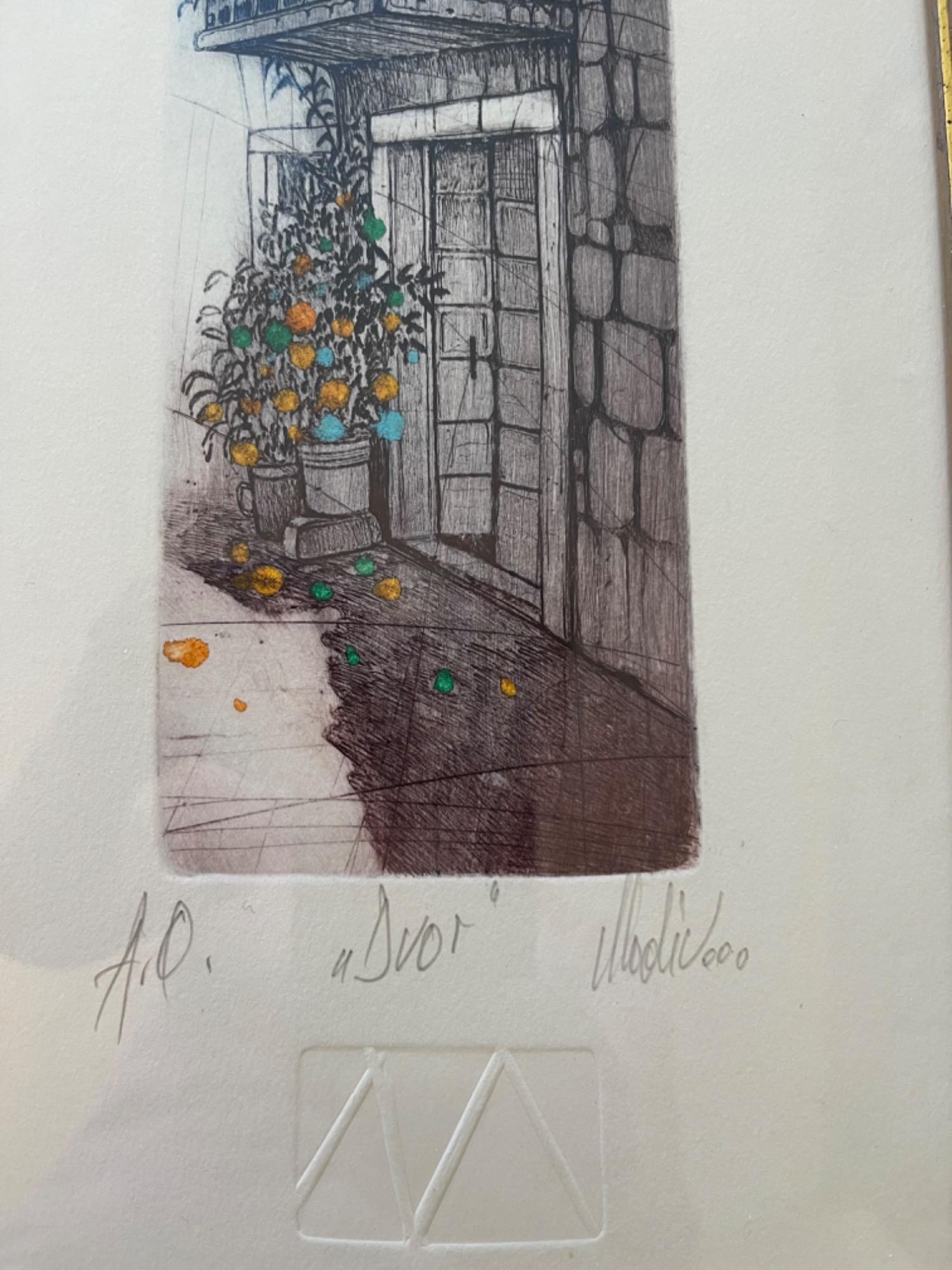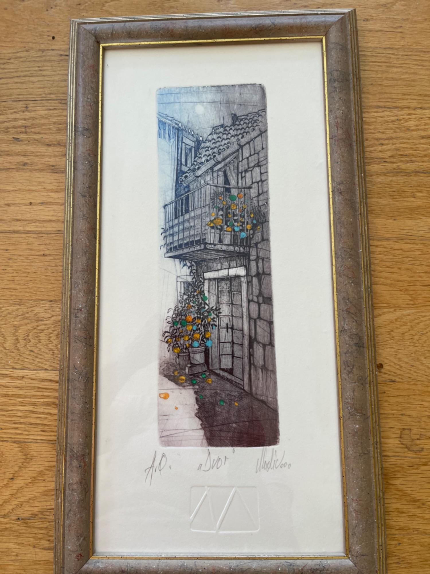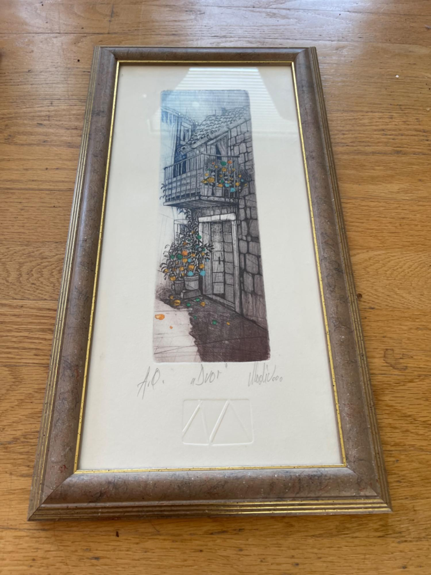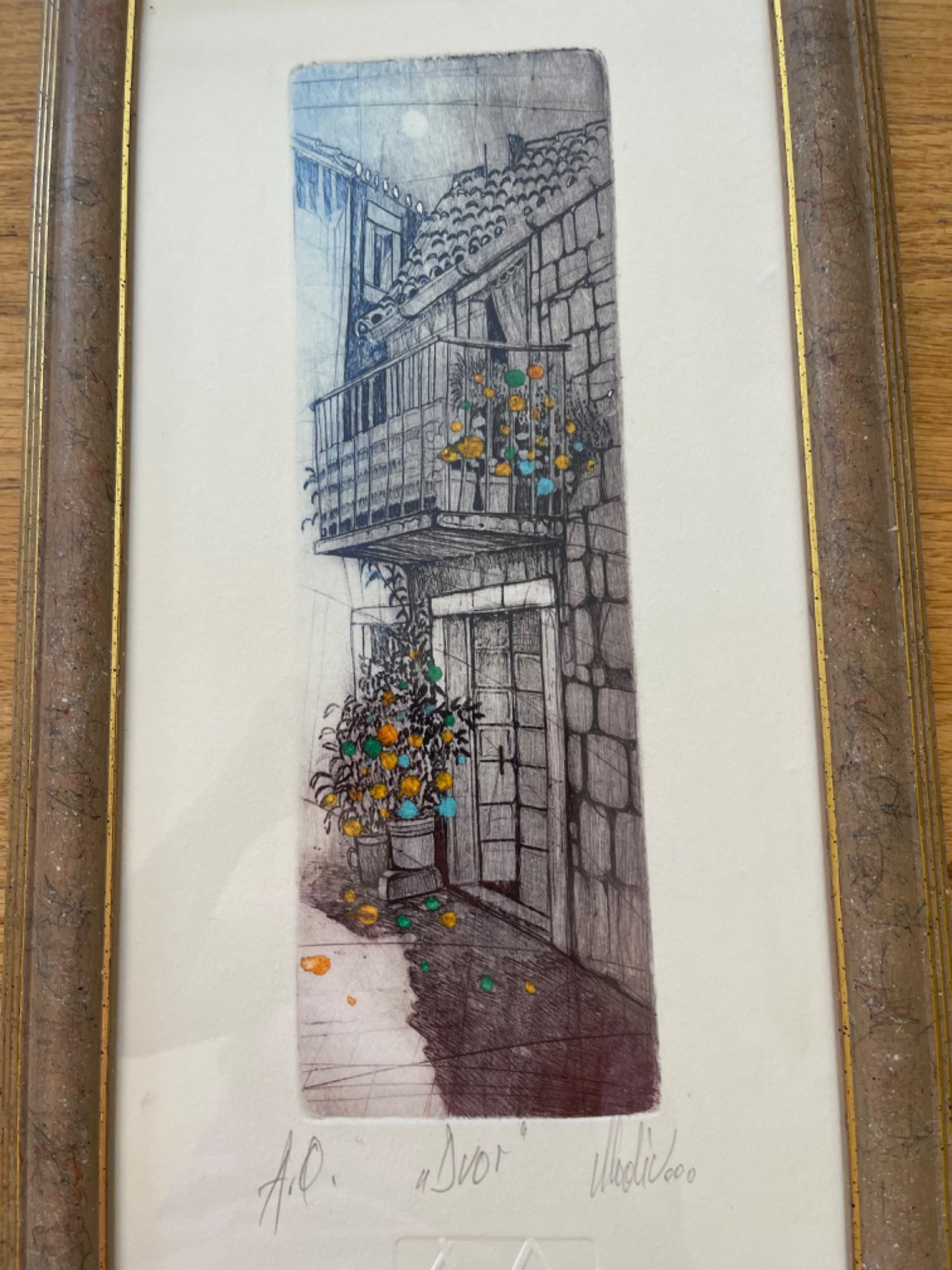 Two Signed Art Pieces. Donkey Print-16 x 14 Building- 18 T x 10W