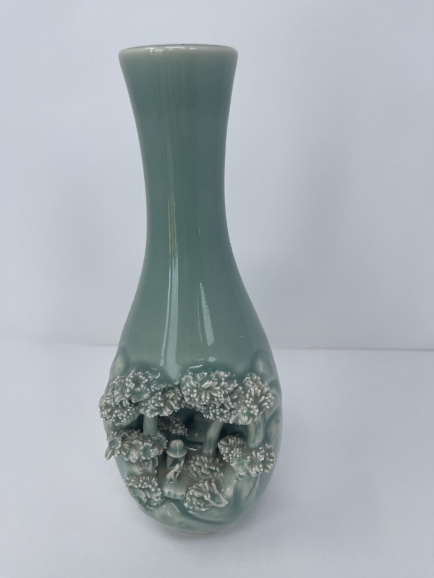 Lot # 125 - Antique Celadon Vase With 3-D Asian Scene