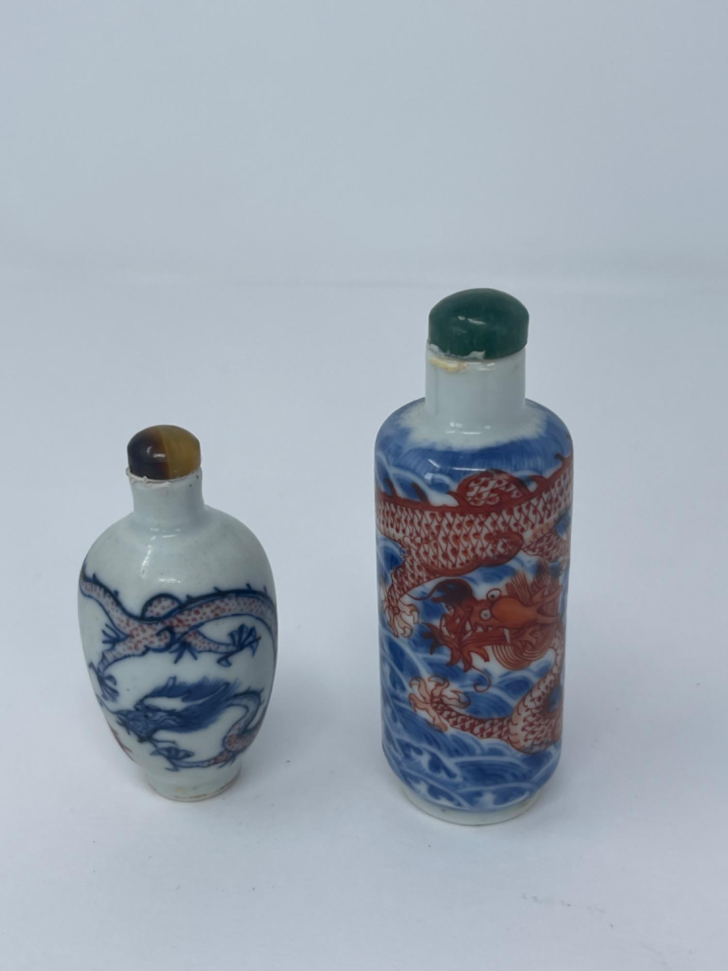 Lot # 126 - Two Antique Porcelain Snuff Bottles 3.5” and 2.5”