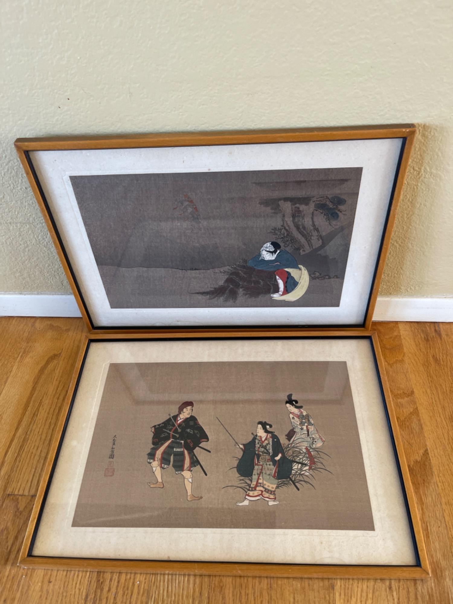 Asian Art Prints- "Rush Gatherer" and Japanese Woodblock Print. No COA on both of these prints. 11 x 12.5