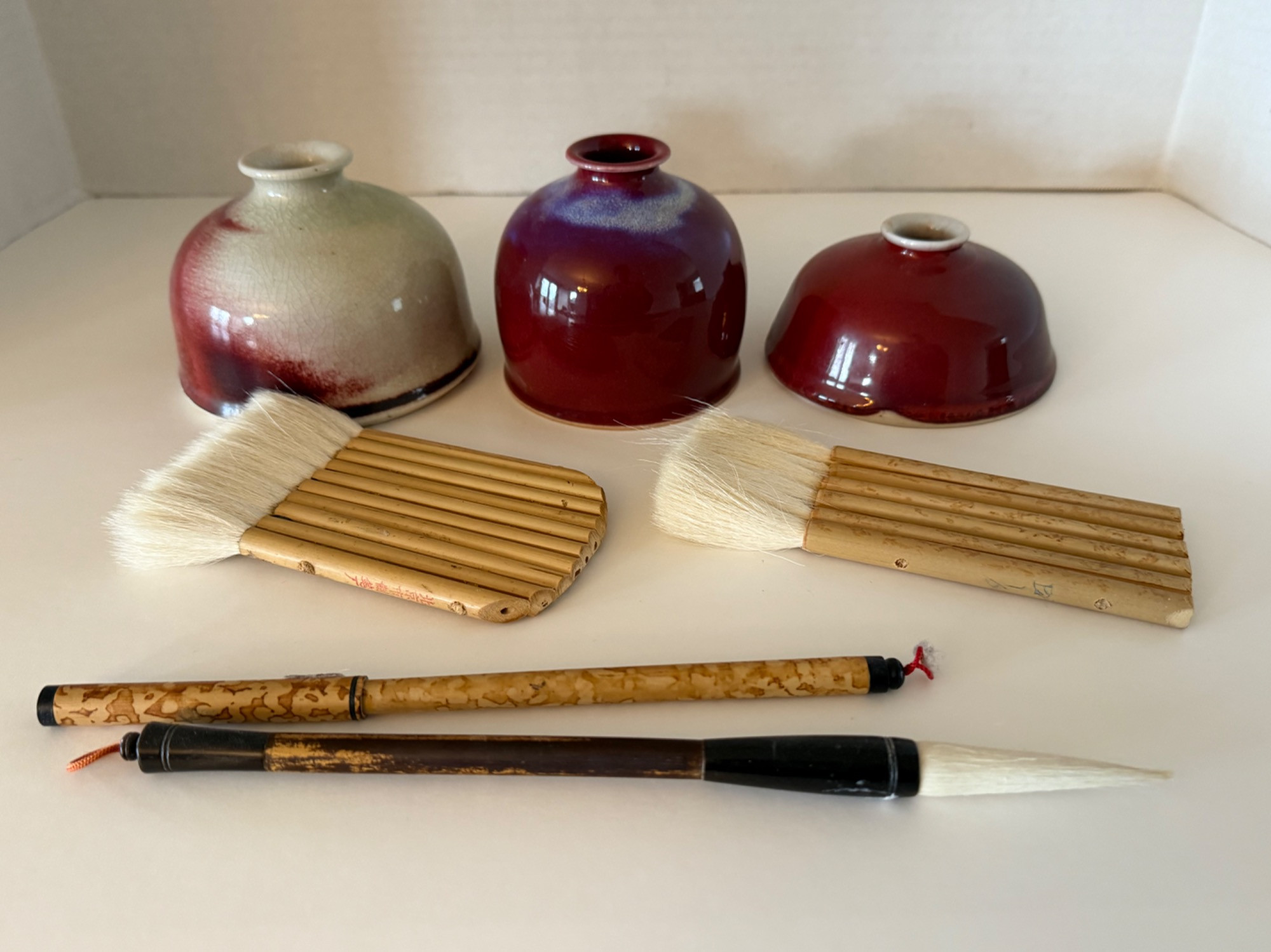 Lot # 161 - Arcanum Ranch Pottery Flambé Beehive Water Pots and Brushes