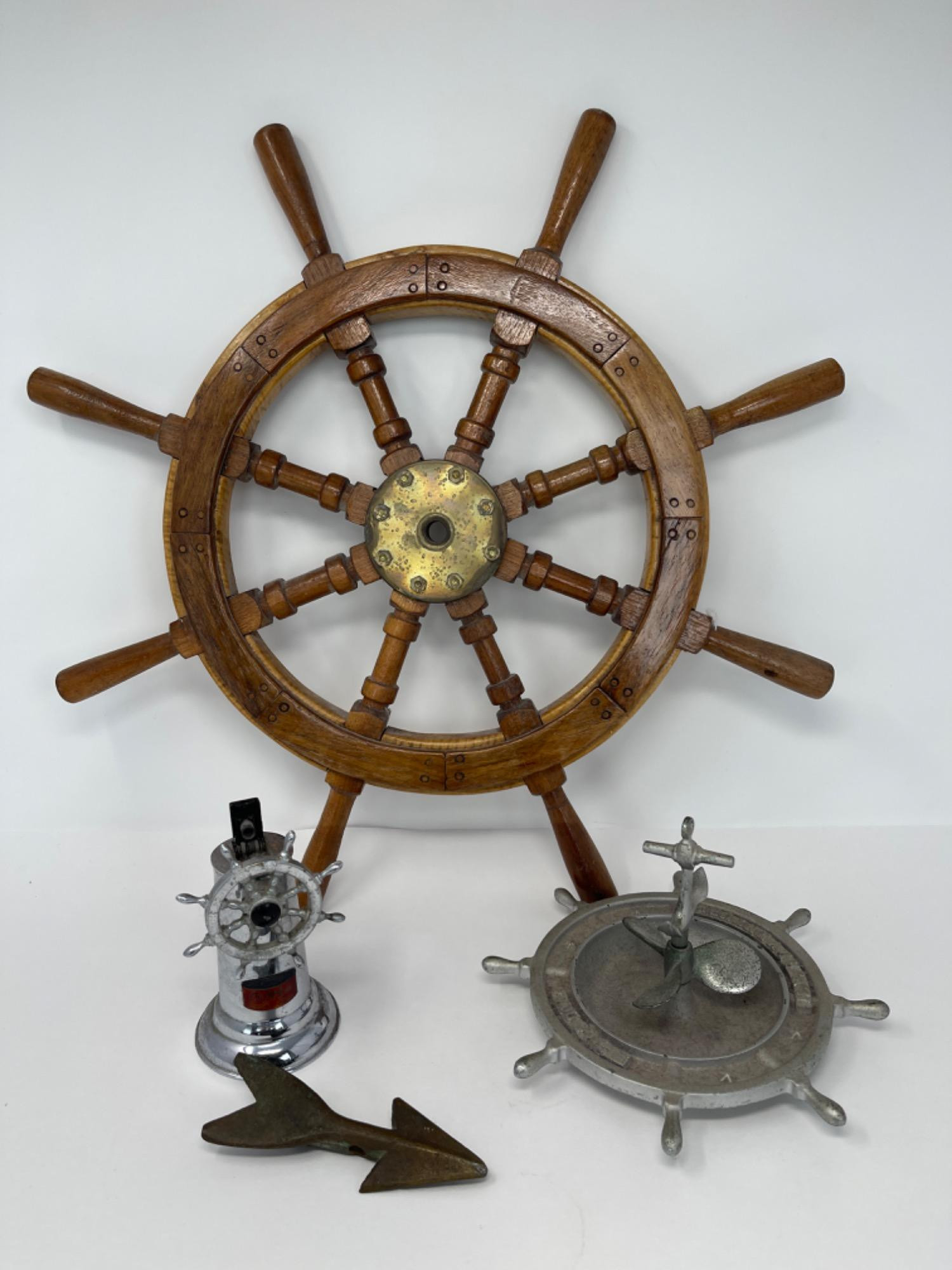 Lot # 164 - Ships Wheel, Ships Wheel Lighter, Ships Wheel Ashtray and Arrow