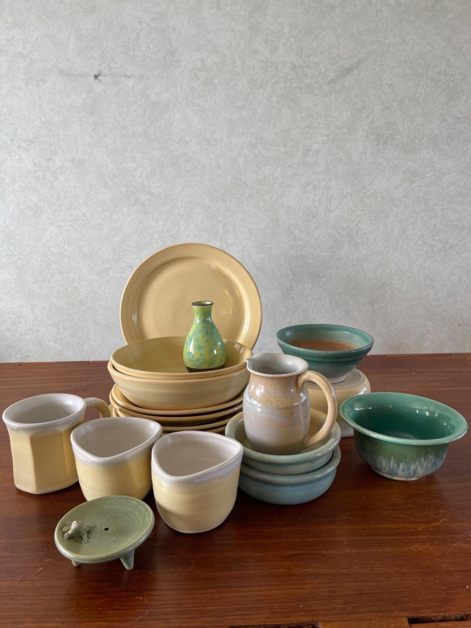 Arcanum Ranch Pottery Yellow Toned and Green Pottery