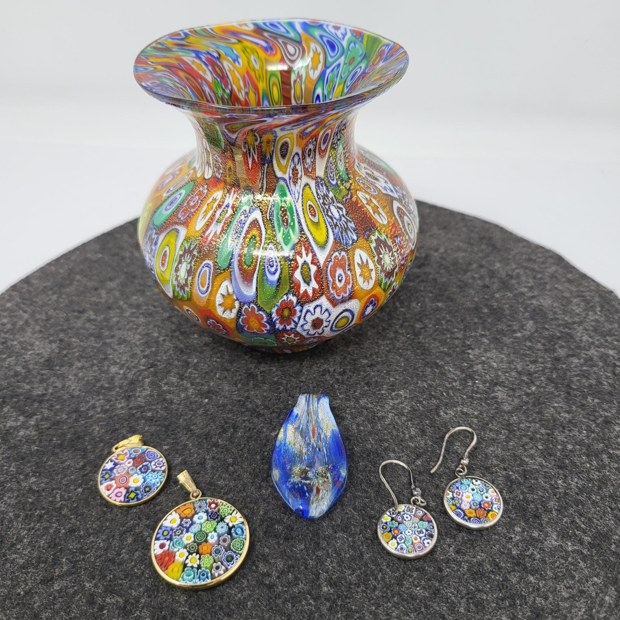 Lot # 84 - Murano Italy Glass Vase, Pendant & Earrings