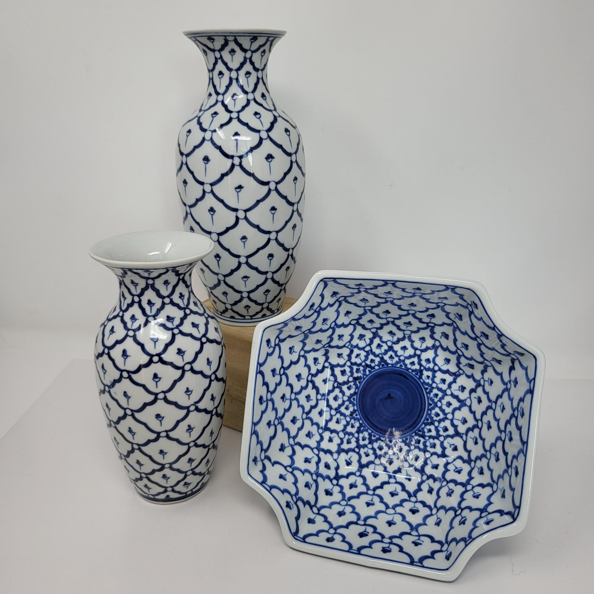 Lot # 97 - Blue & White Thailand Vases & Bowl