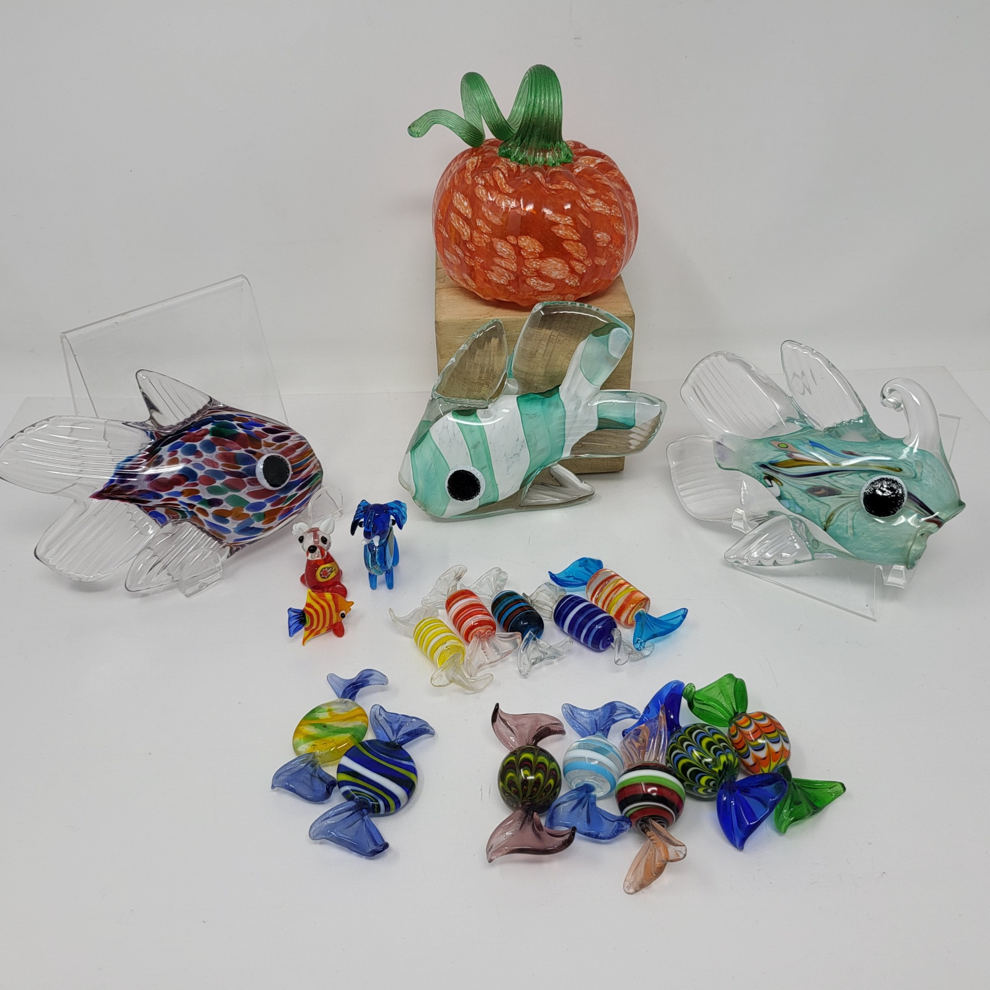 Lot # 104 - Handmade Glass Collection Fish, Candy, Pumpkin & More