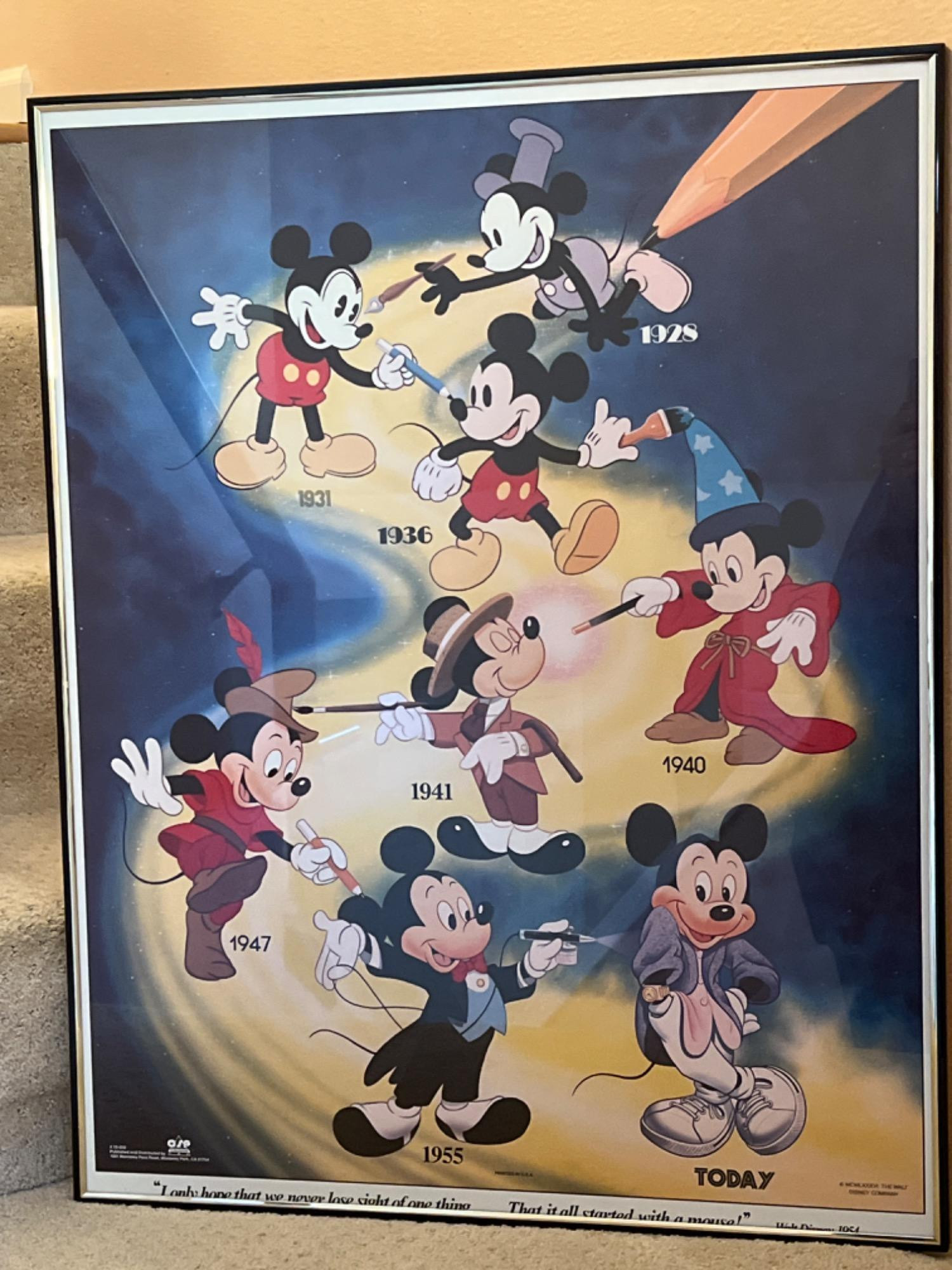 Rare 1986 published Walt Disney's Mickey Mouse creative progression through the years - 1928 to Now poster. Distributed by OSP Publishing.